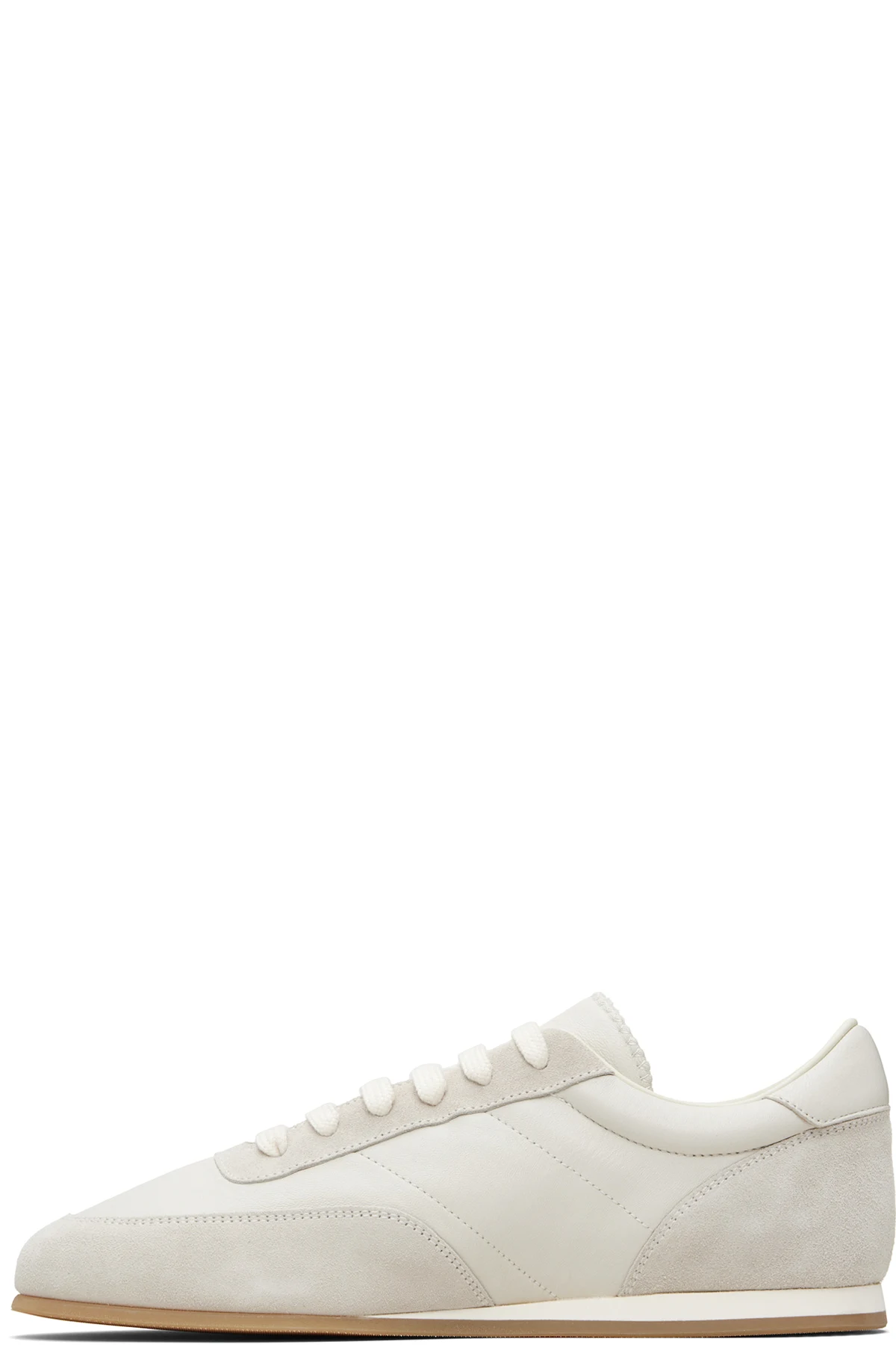Low-top paneled buffed calfskin and calfskin suede sneakers.