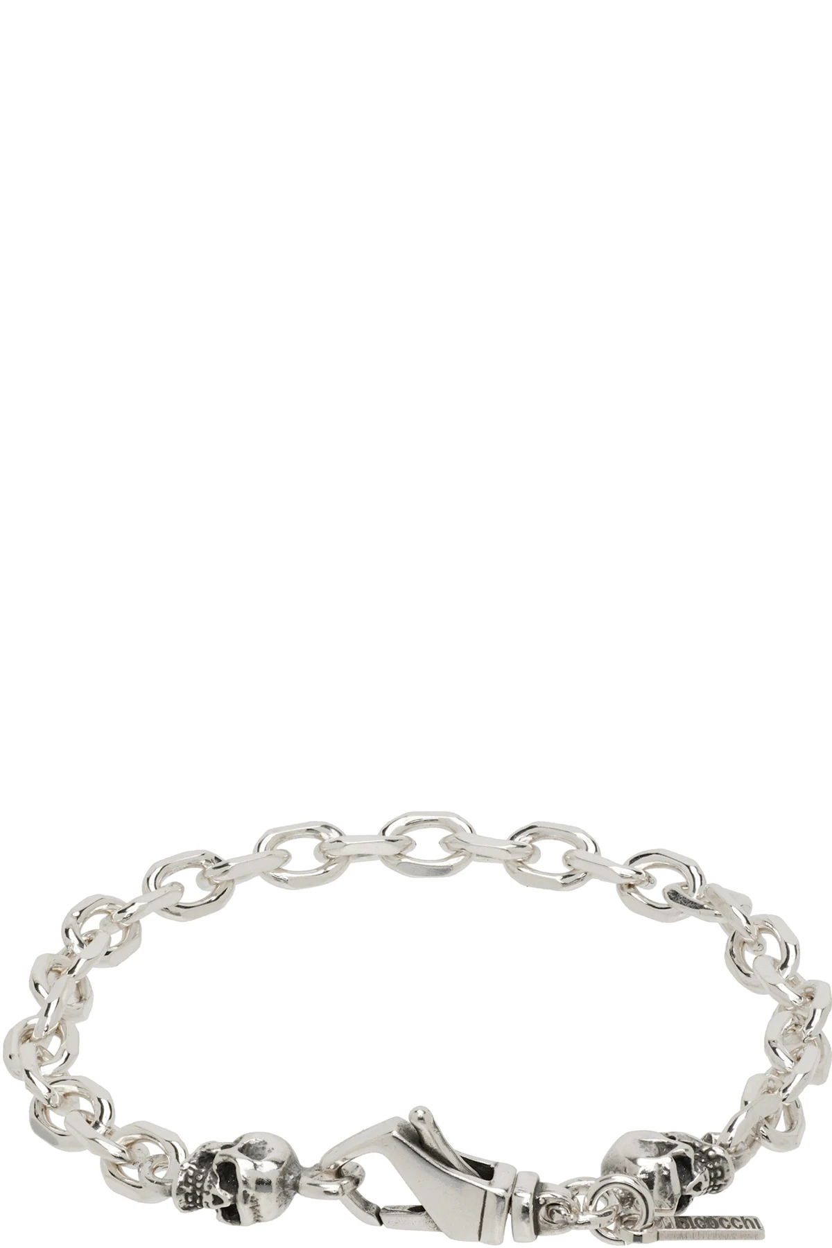 Cable chain bracelet in sterling silver. Engraved graphics and logo plaque at lobster clasp.