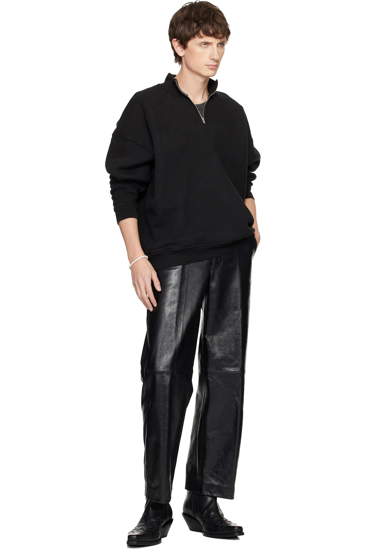 BLACK Leather bracelet with studs