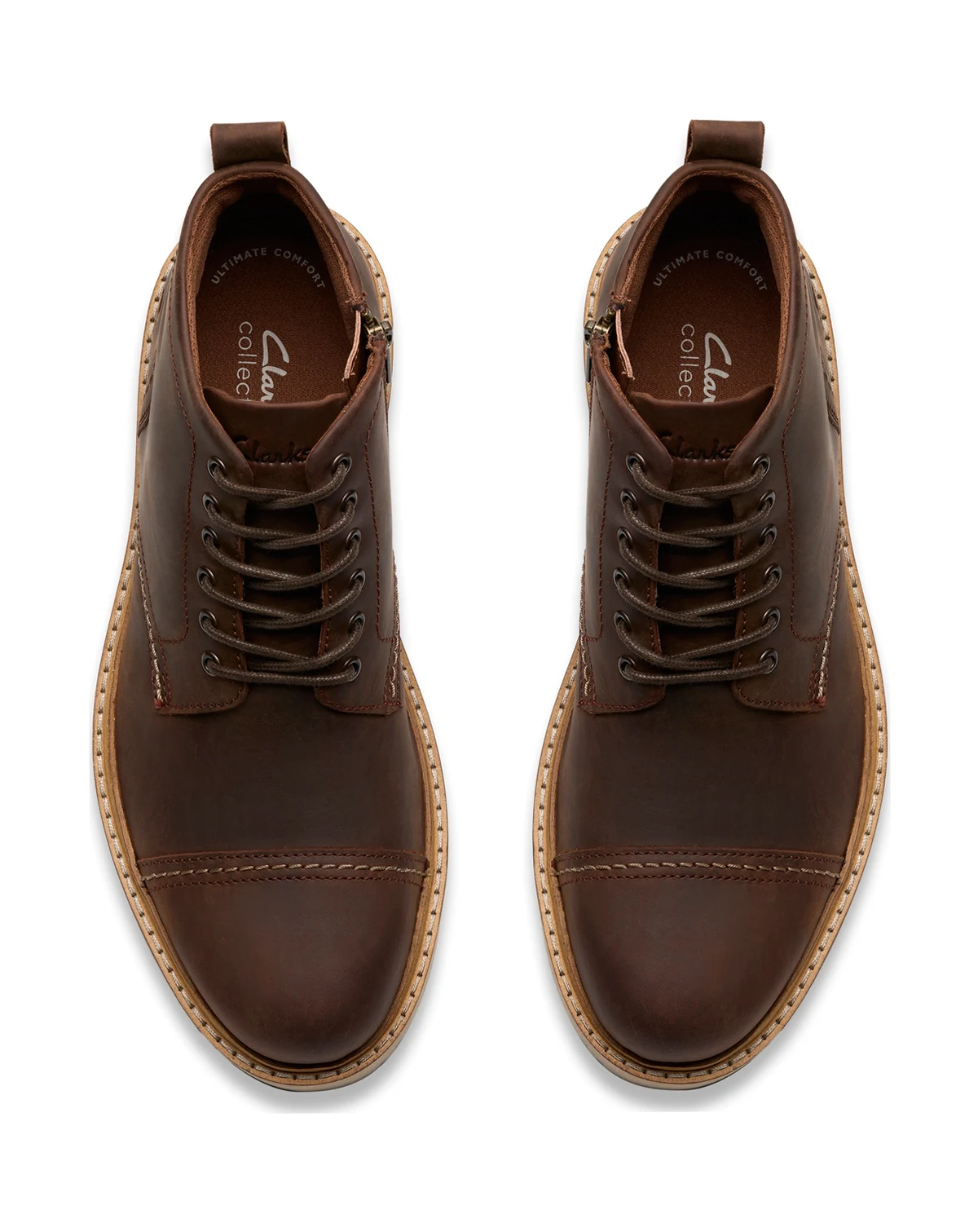 Clarks Collection Weltridge Zip is a modern, casual, cap-toe boot, blending a workwear aesthetic with smart detailing. Featuring a hard-wearing leather welt construction, lightweight sole and a molded comfort footbed, it offers optimized durability and easy-walk support. And, in genuine leather, it perfectly balances casual aesthetics with a premium finish.