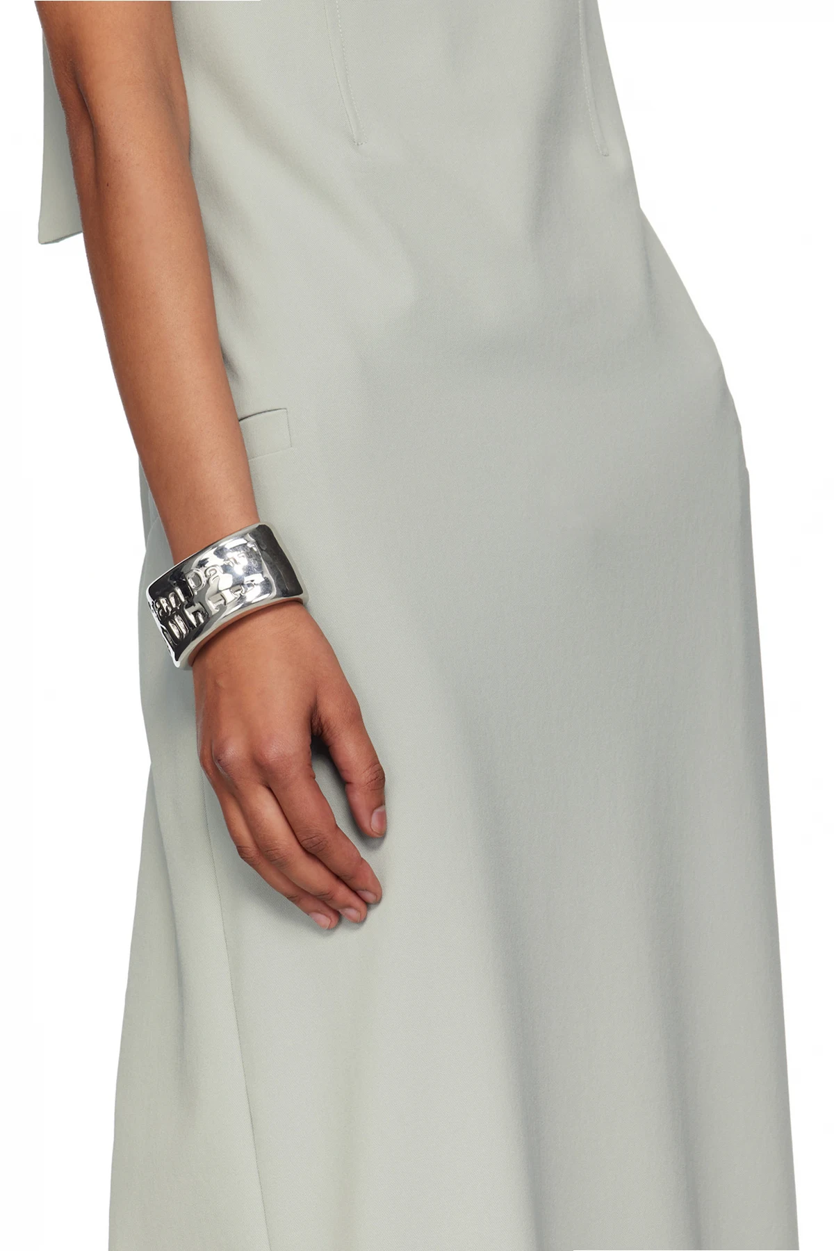 Open cuff bracelet in silver-tone brass.