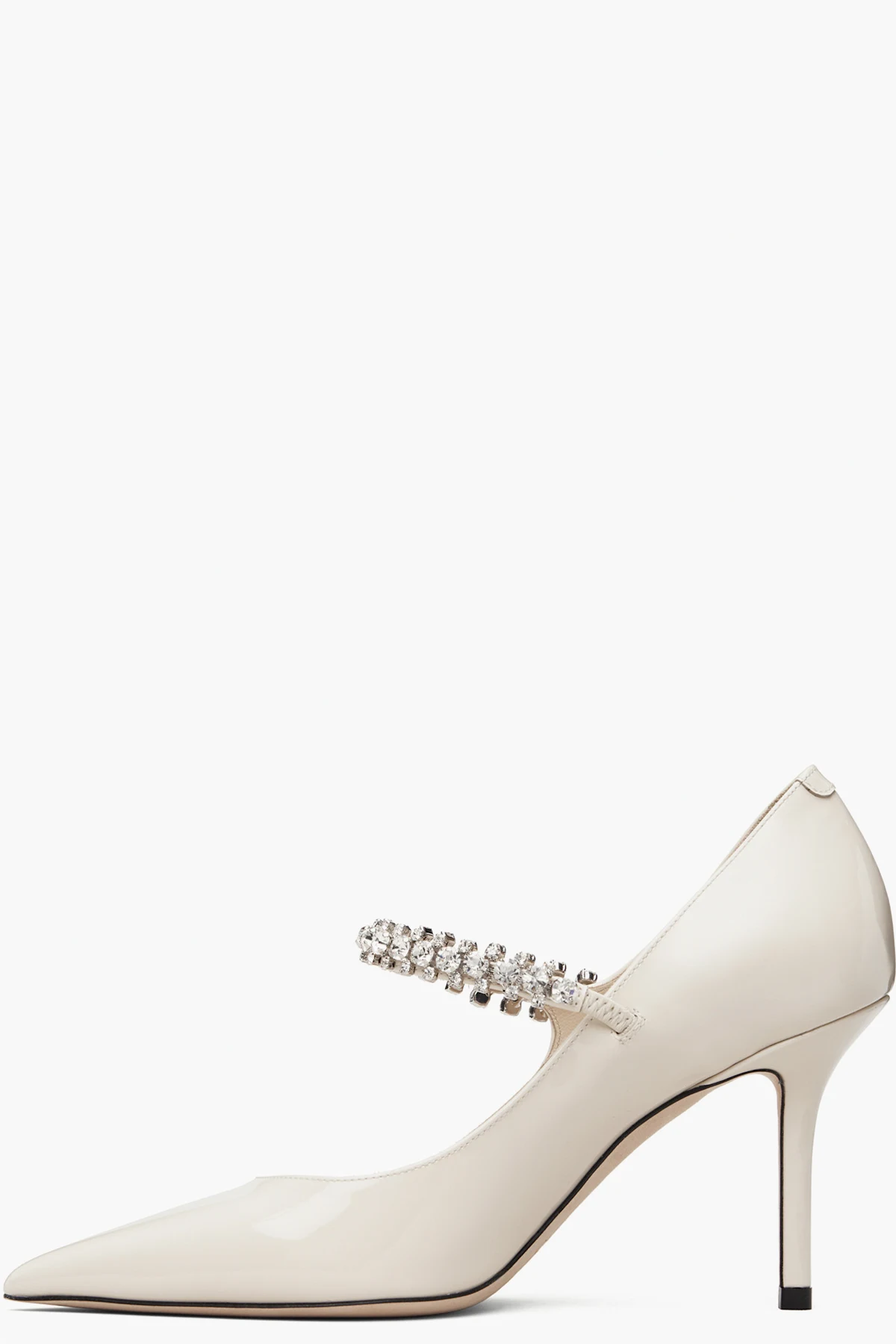 · Partially elasticized strap with rhinestones at vamp