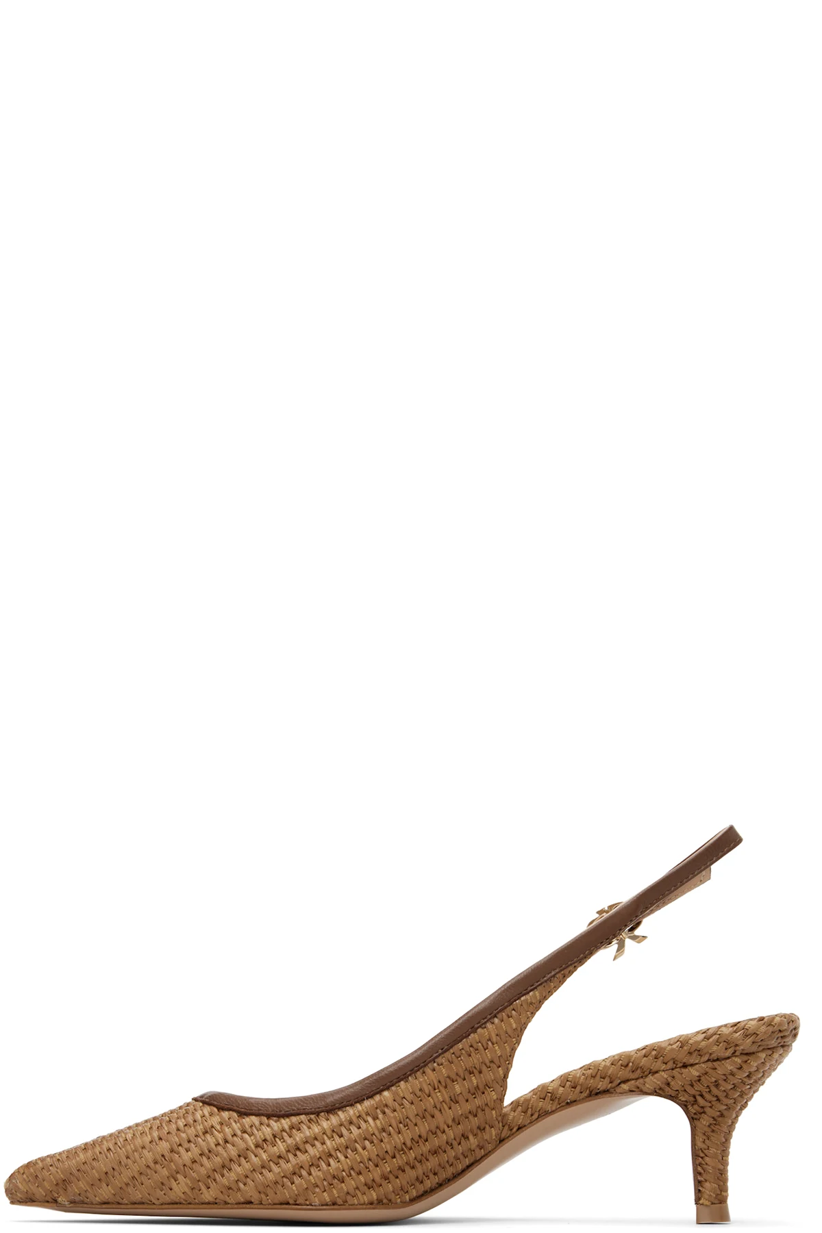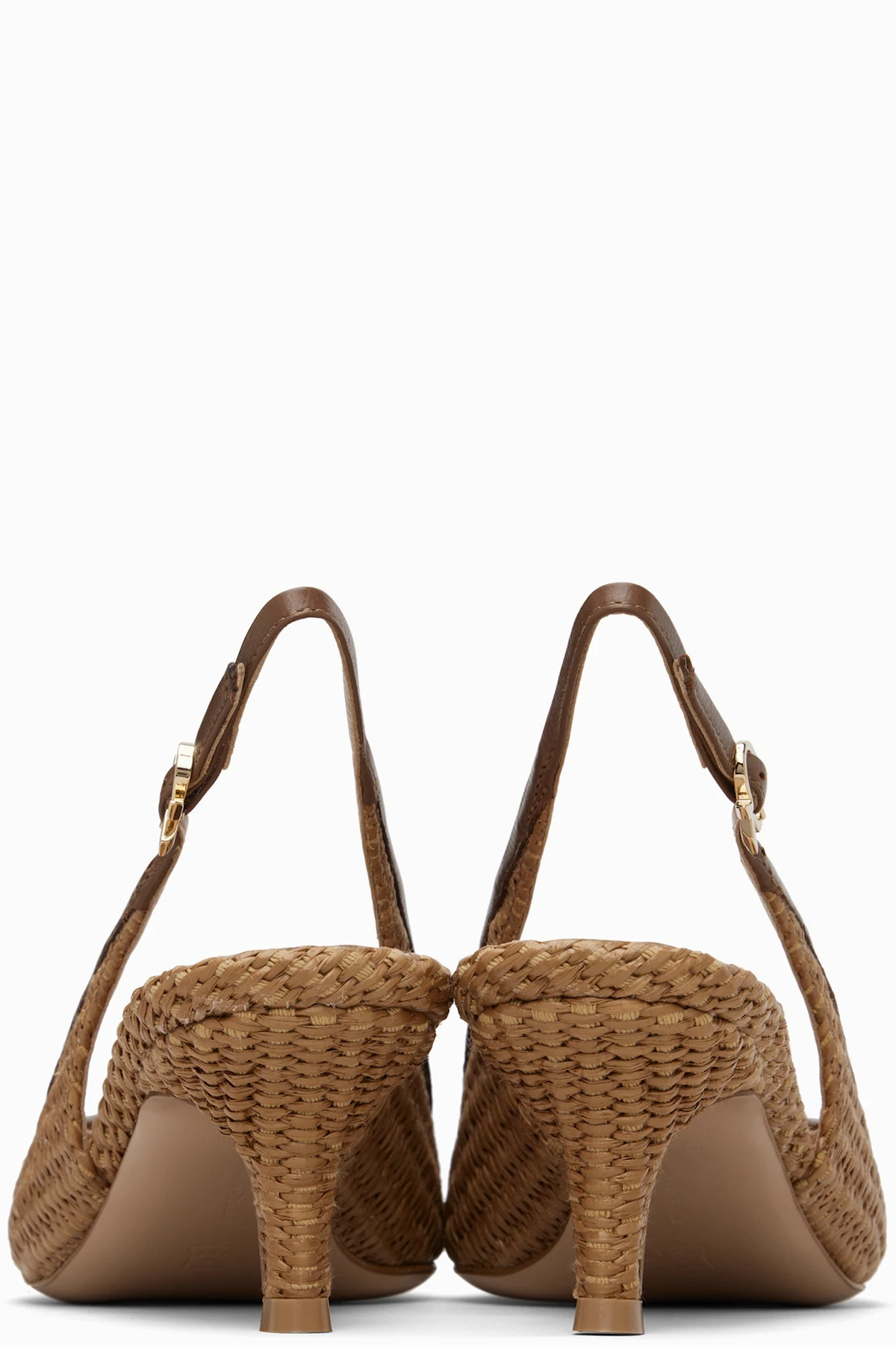Handcrafted basket-woven raffia heels.
