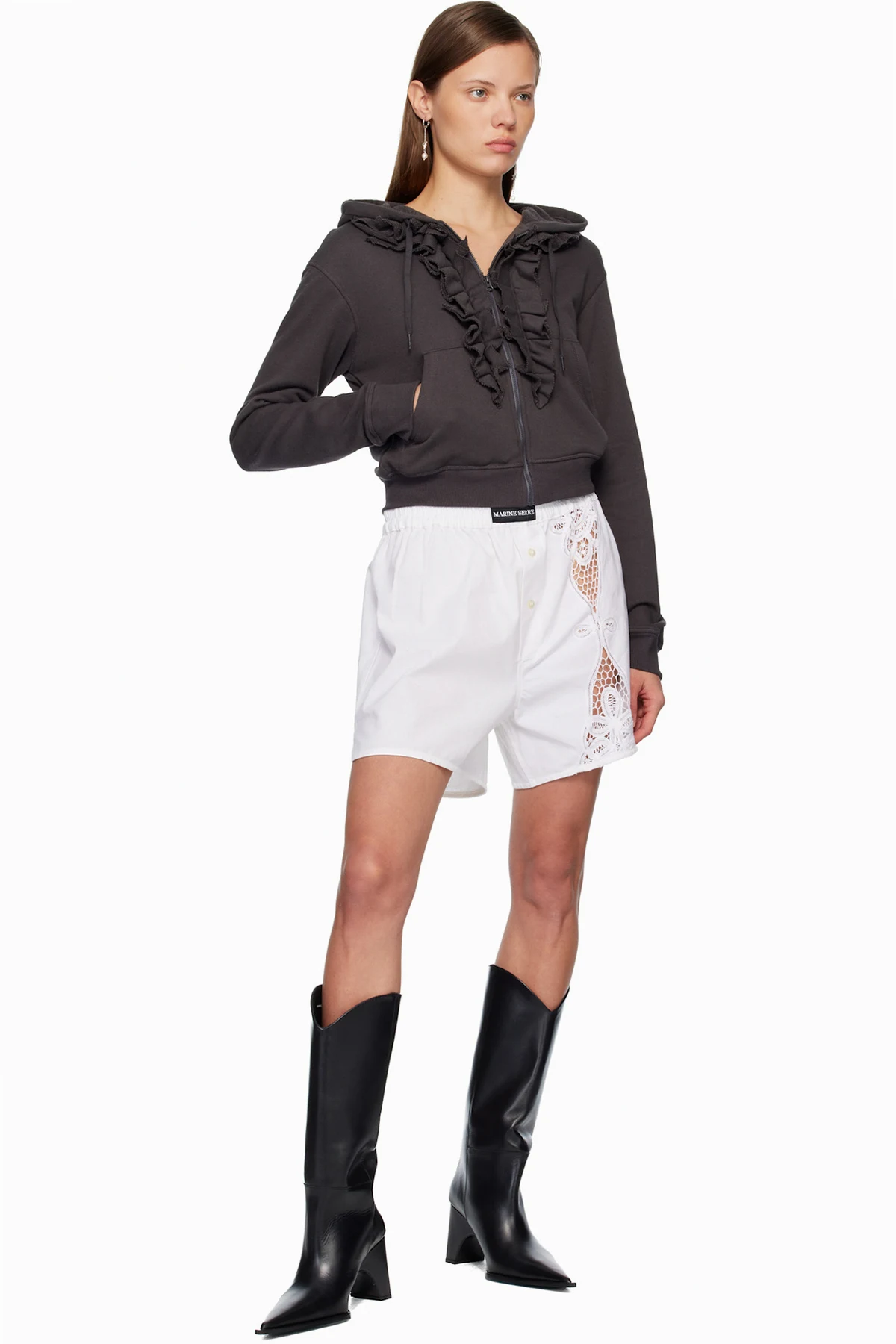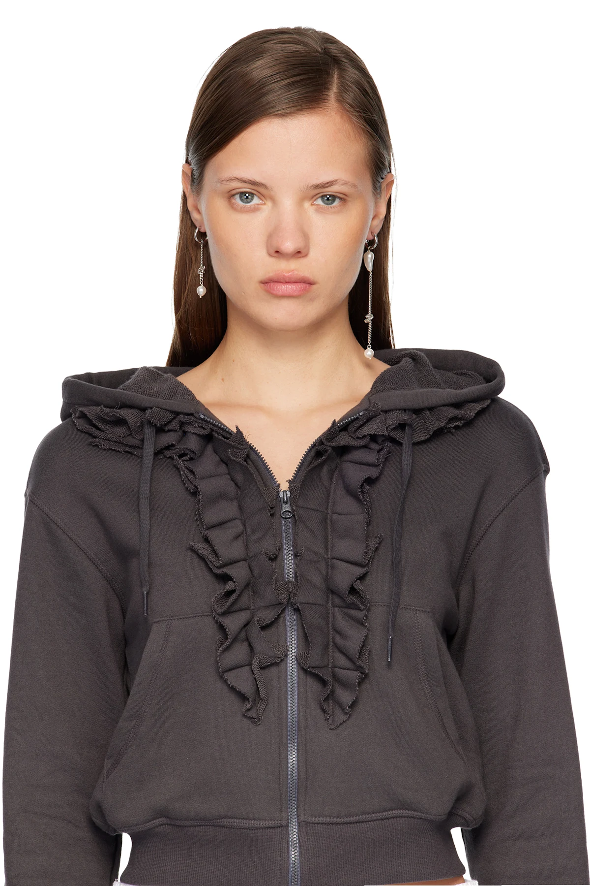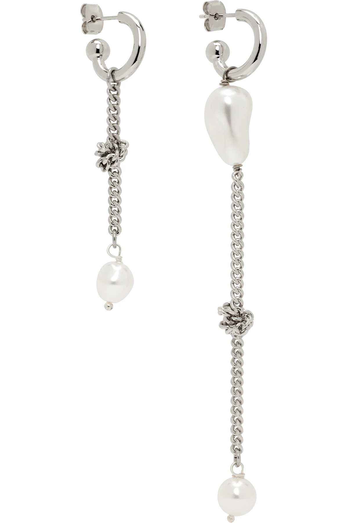 Pair of handcrafted and mismatched drop earrings in palladium-plated brass.