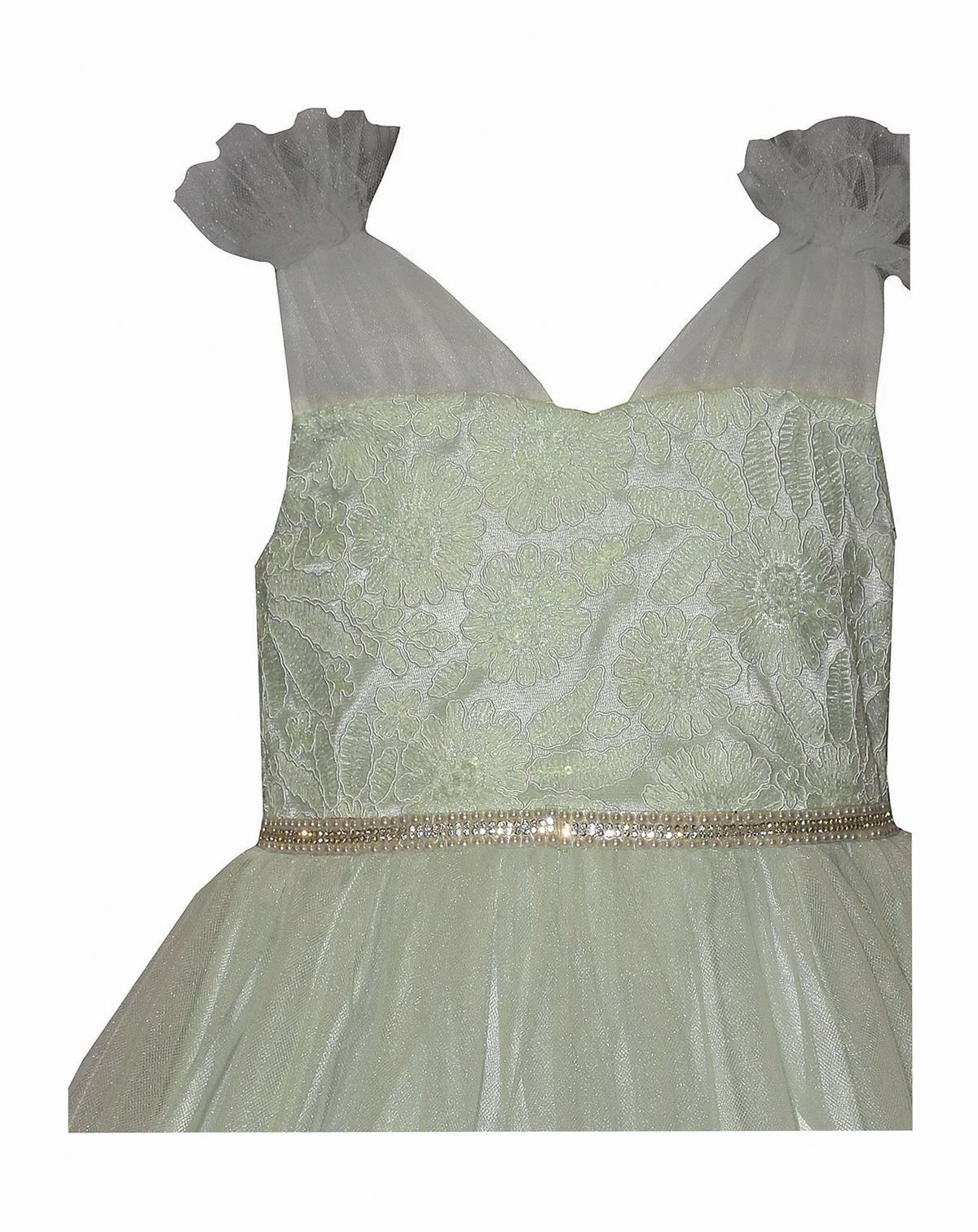 Twirl with grace in this ballerina-inspired party dress from Bonnie Jean, showcasing an embroidered bodice and sparkling waist trim. The faux tie-shoulder detail and full skirt capture a magical sense of movement.
