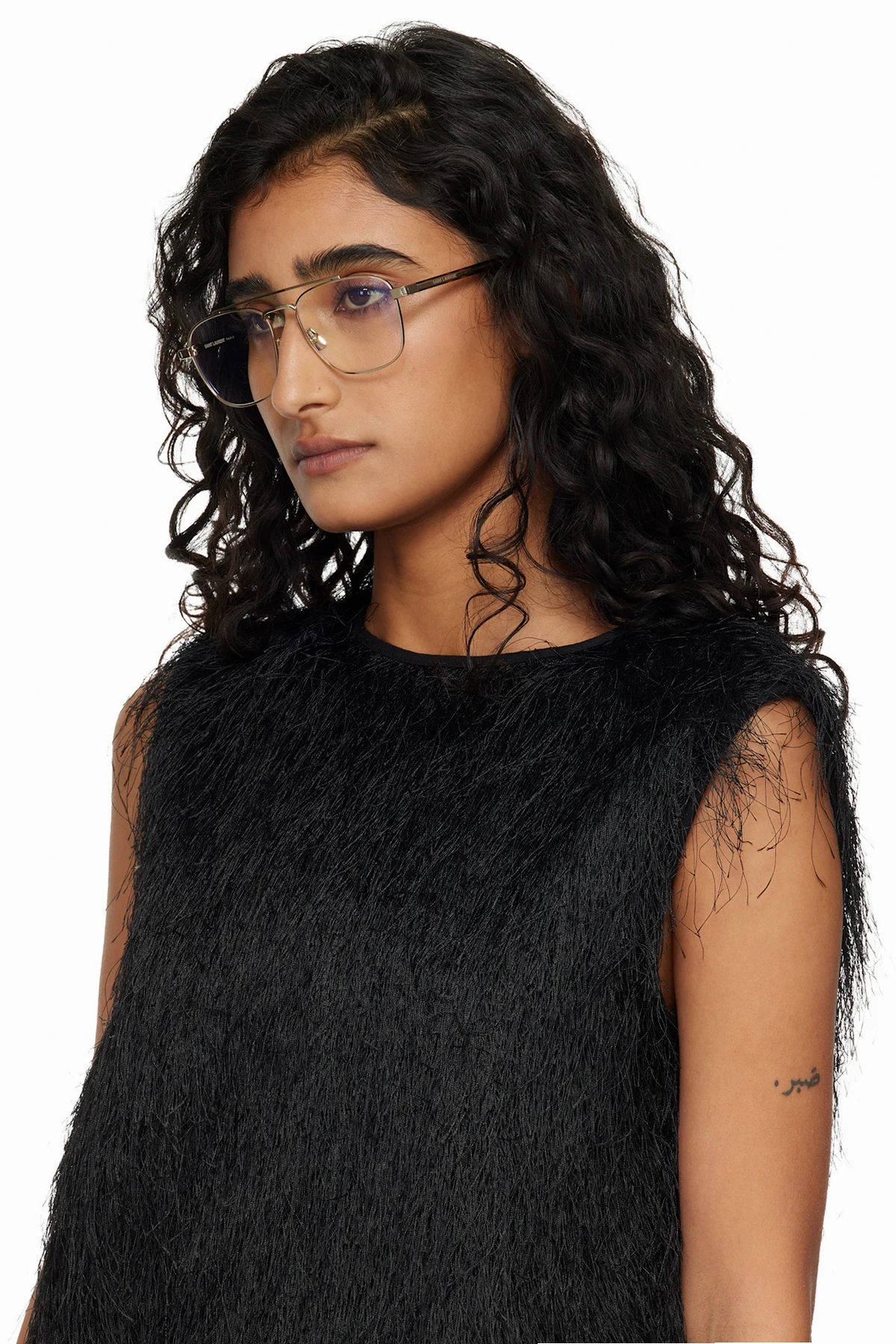 Aviator-style metal-frame optical glasses.