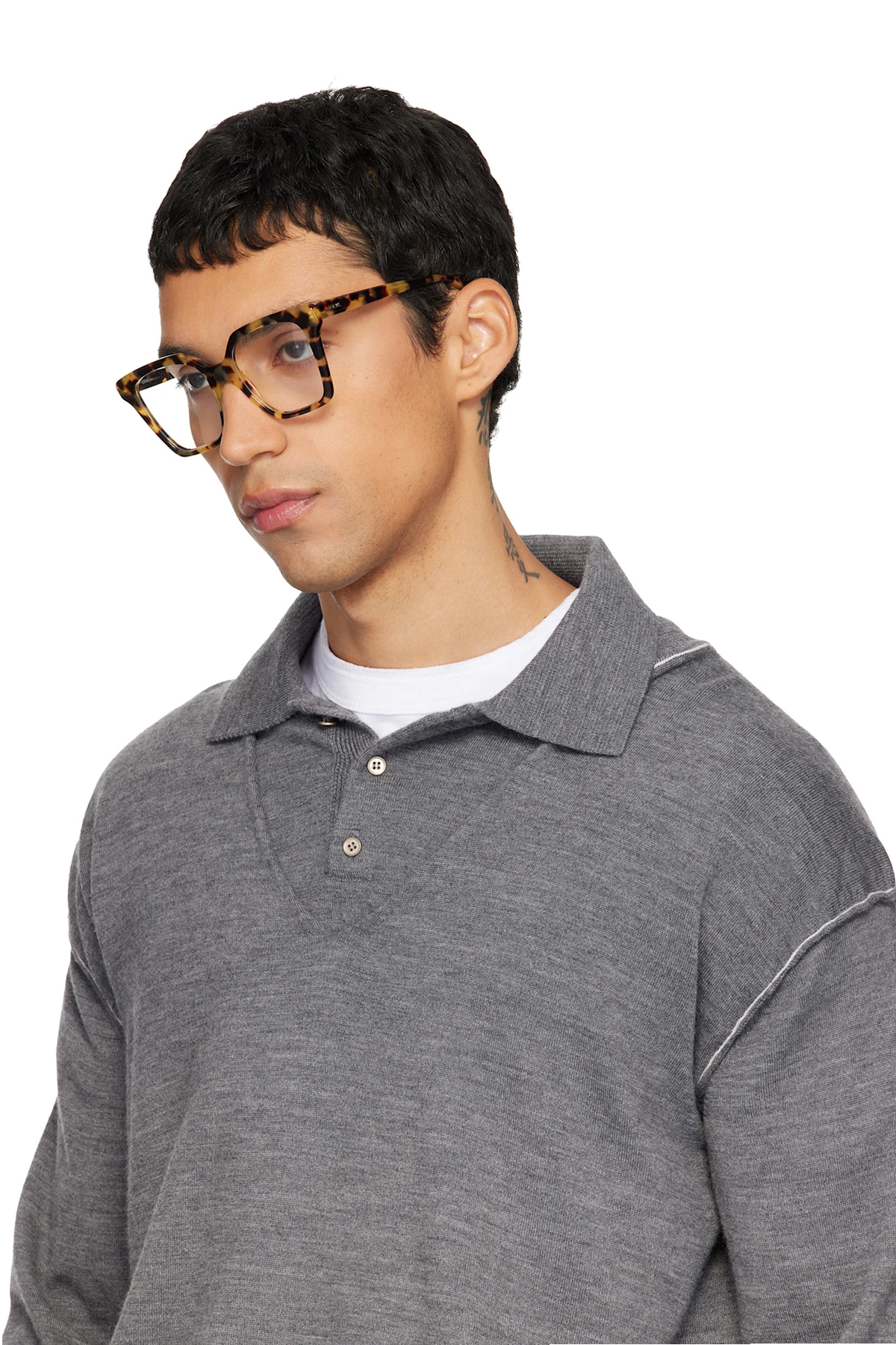 Square semi-transparent tortoiseshell acetate-frame optical glasses.
