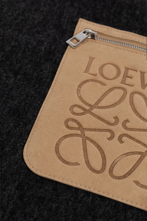 Crafted from premium wool for remarkable plushness, softness, and enduring comfort, this solid black scarf embodies classic minimalism—ensuring adaptability to any ensemble and season. Its most distinctive feature is a meticulously attached light brown leather pocket, adorned with an embossed designer logo and secured by a sleek silver zipper, providing pragmatic elegance and subtle exclusivity.