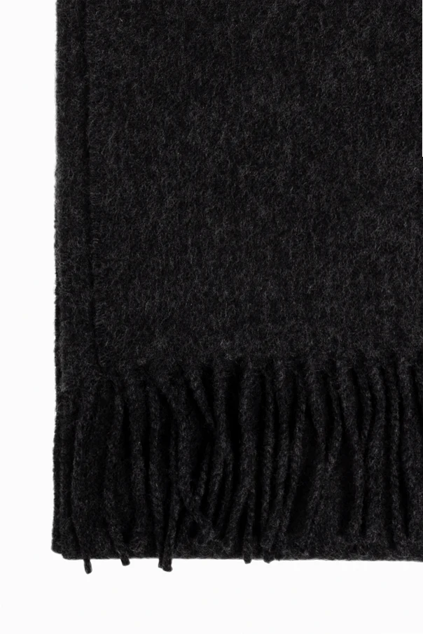 Discover timeless sophistication with this black wool scarf by Loewe, expertly tailored for both warmth and versatility. The elongated, rectangular silhouette is finished with densely woven black fringes at each end, lending an understated yet refined touch to the accessory.