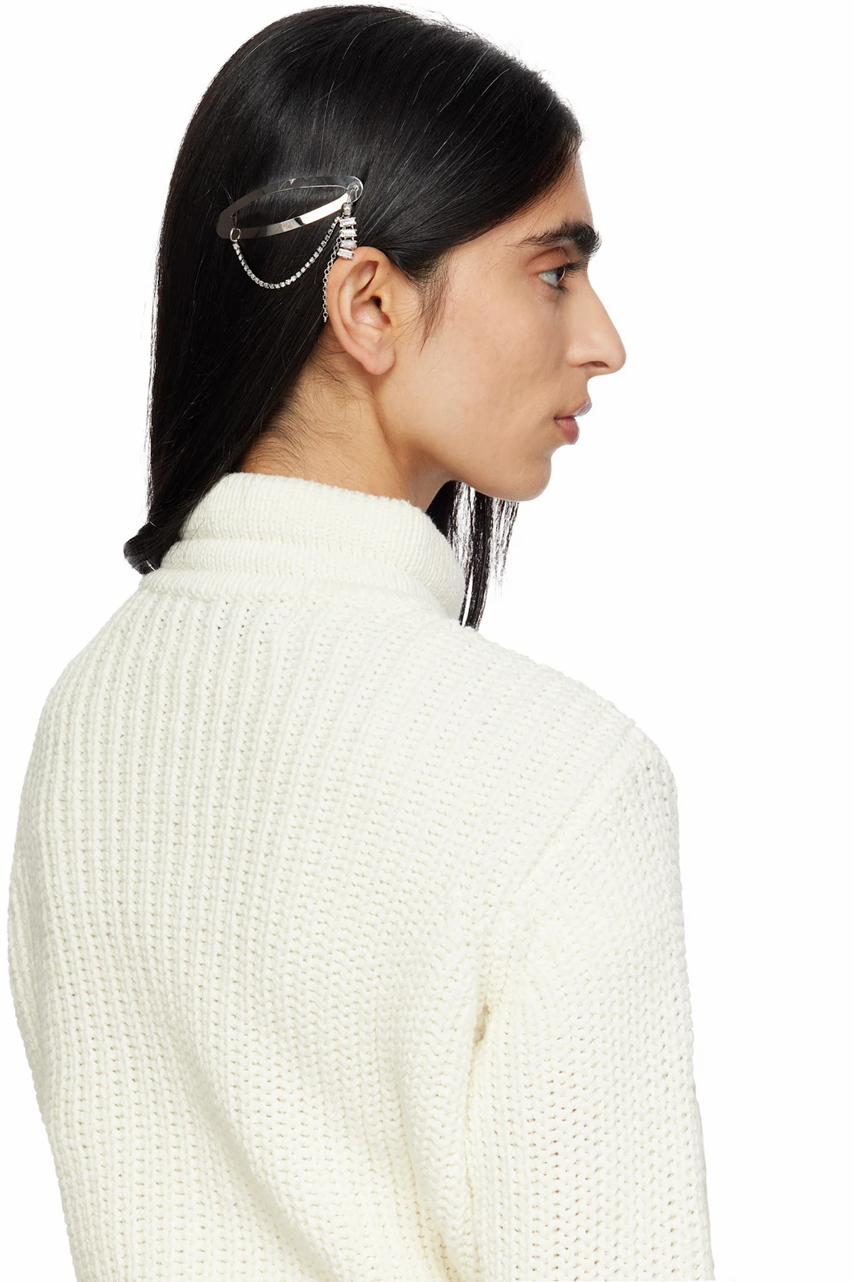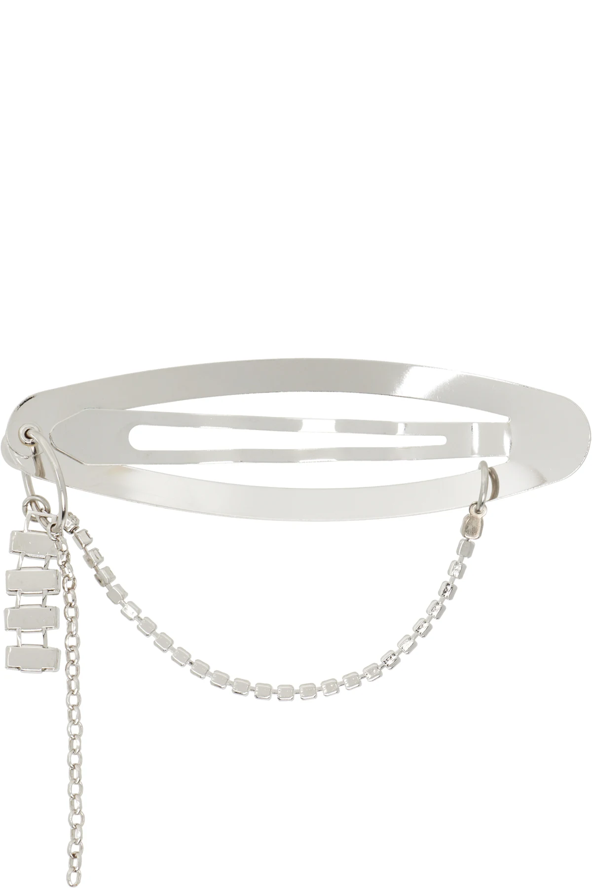 Handcrafted hair clip in palladium-plated brass.