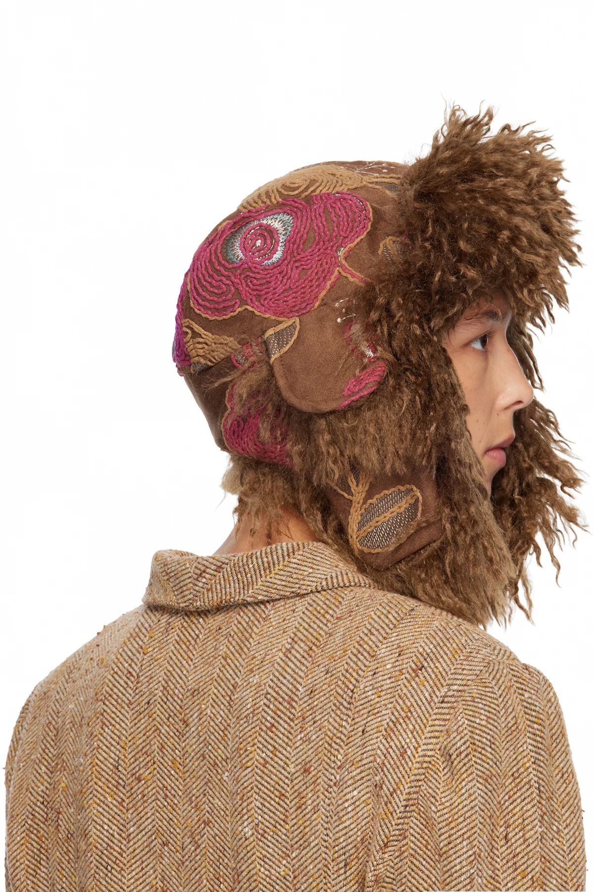 Faux-suede and fleece aviator hat.