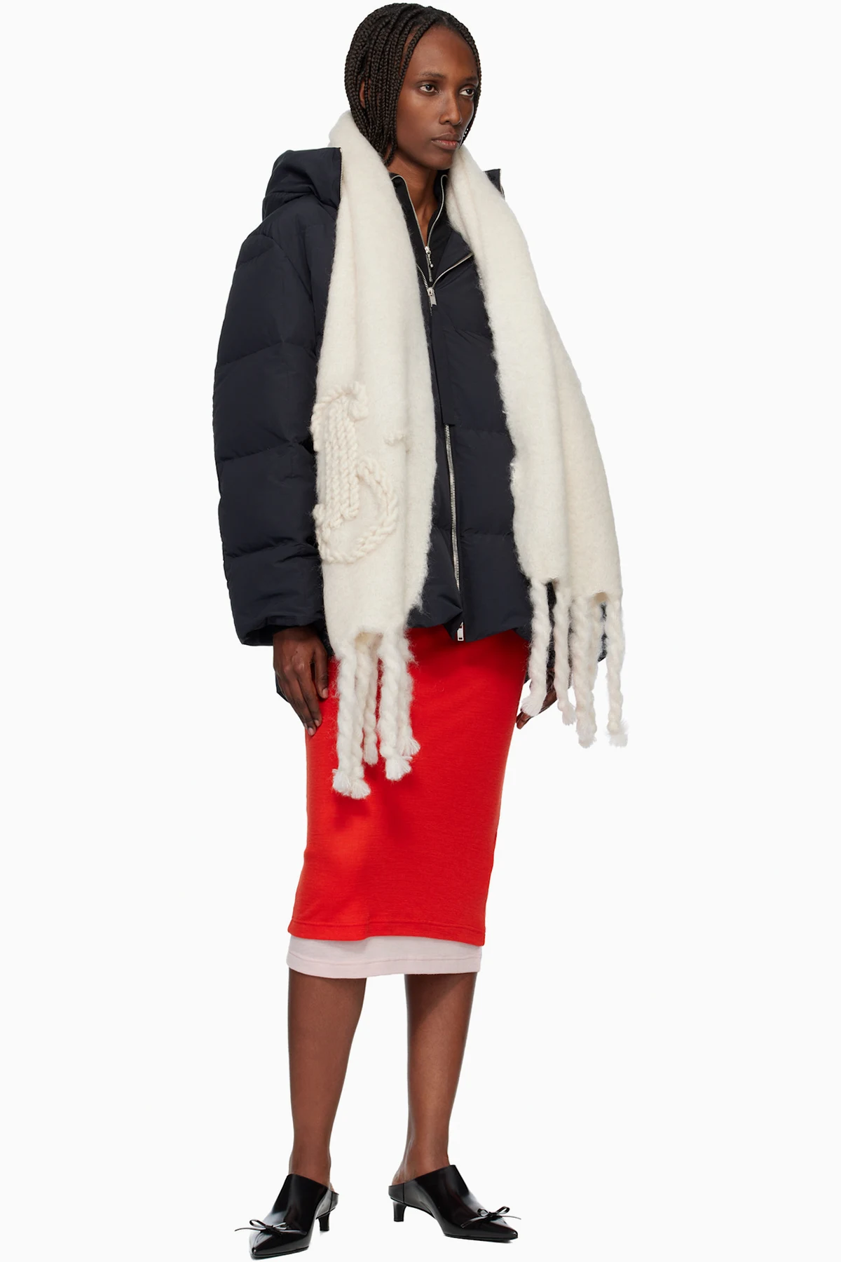 Rectangular hand-knit mohair- and wool-blend scarf.