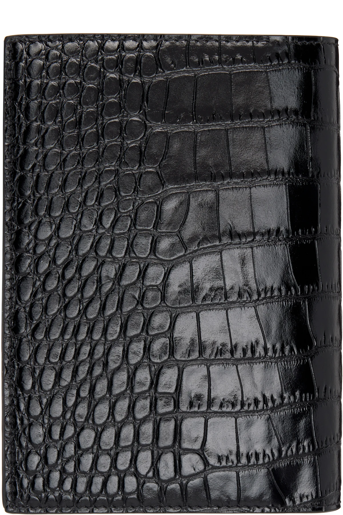 Polished croc-embossed calfskin passport holder.