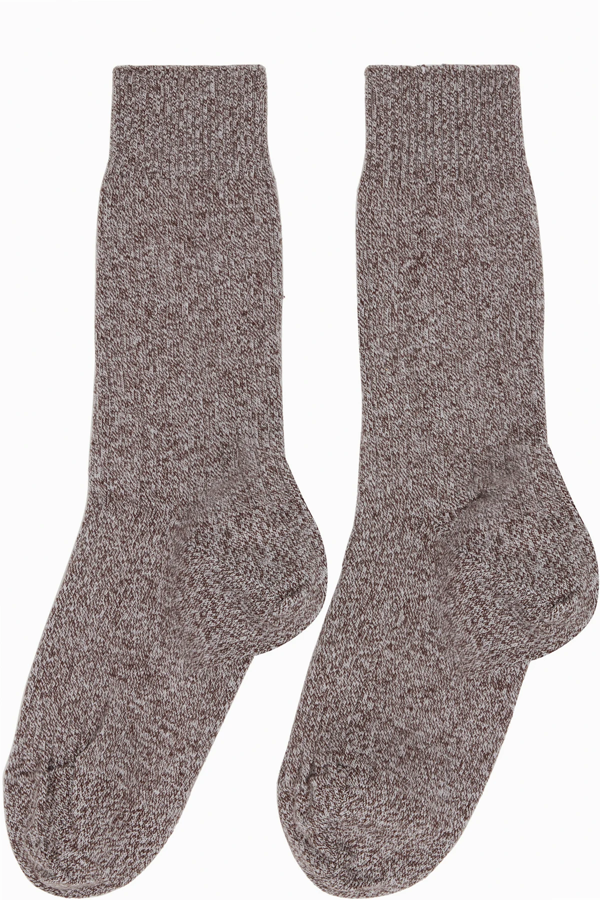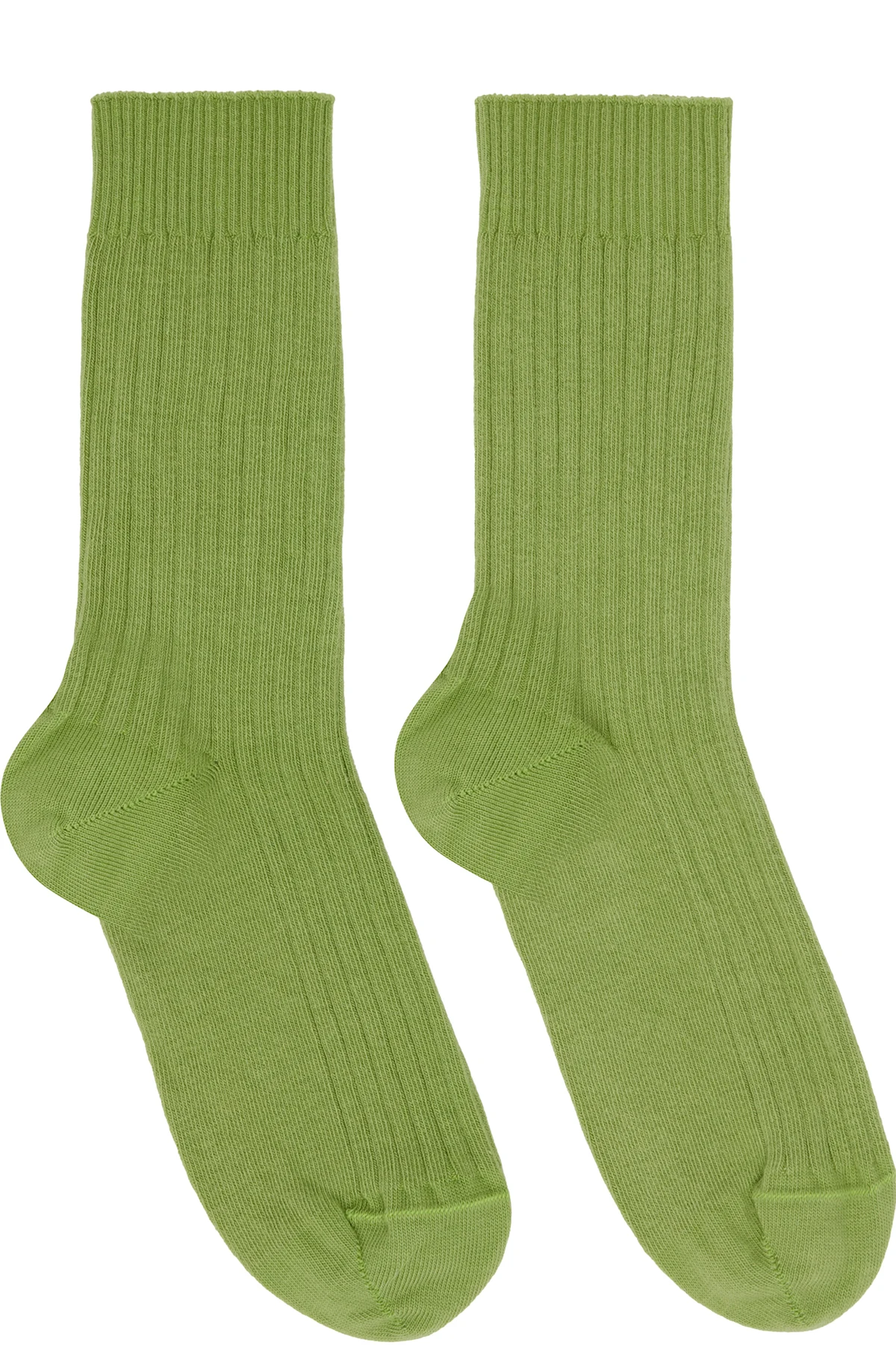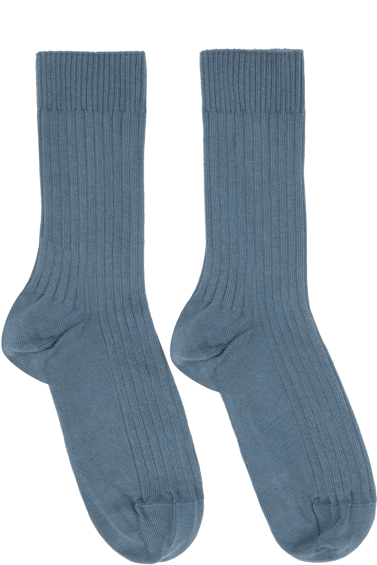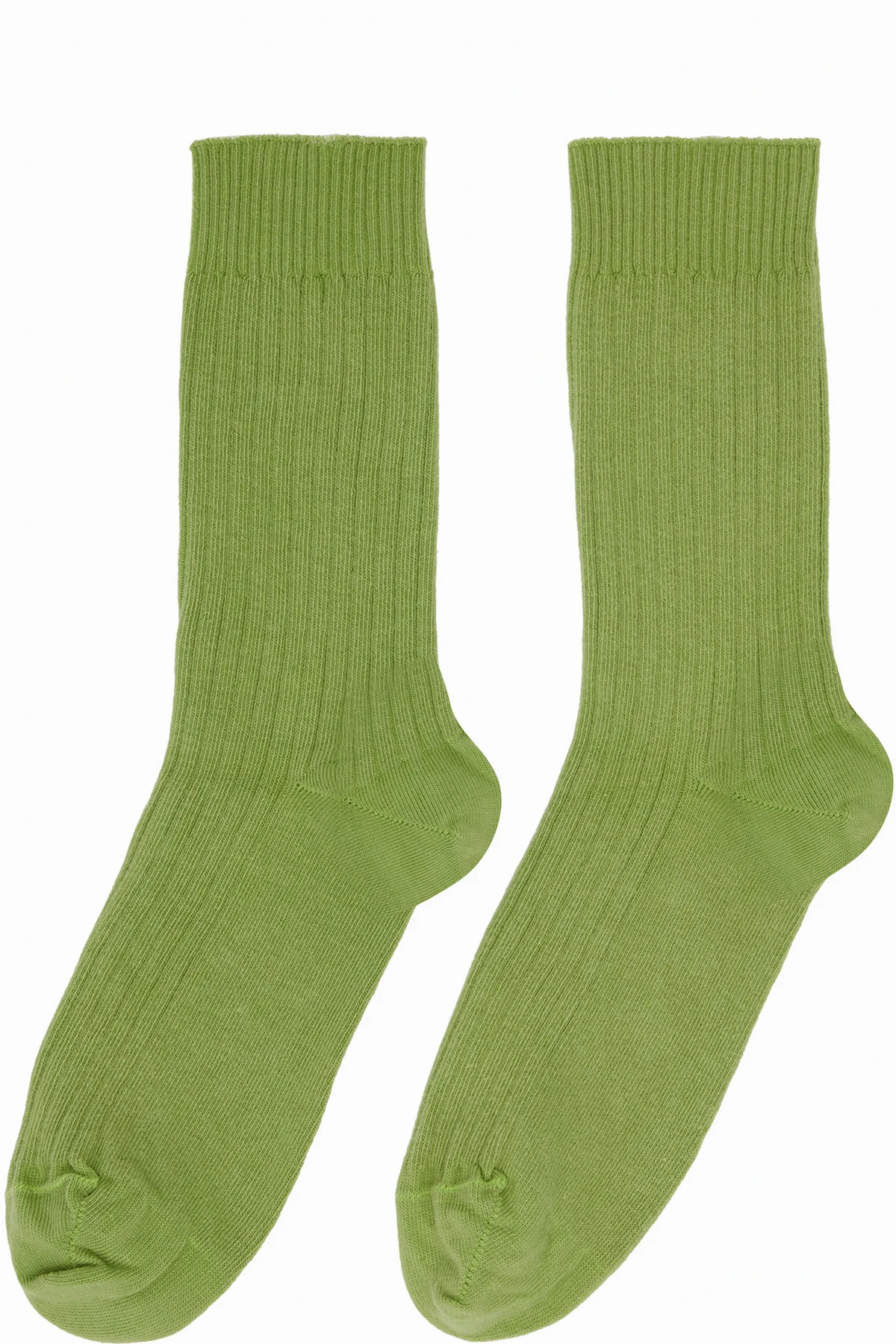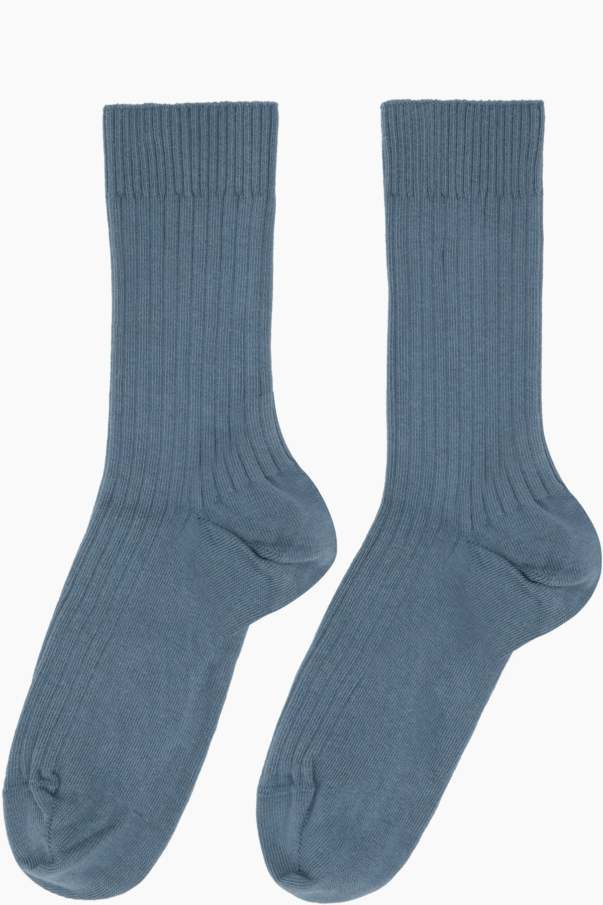 Three assorted pairs of calf-high rib-knit stretch organic cotton-blend socks. Certified GOTS, OEKO-TEX®, and OCS 100.