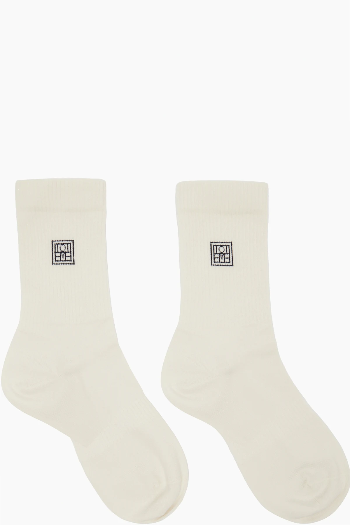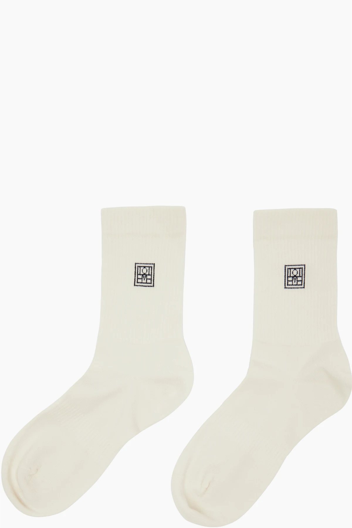 Two pairs of calf-high stretch cotton-blend jersey socks. Logo embroidered at rib-knit collar.