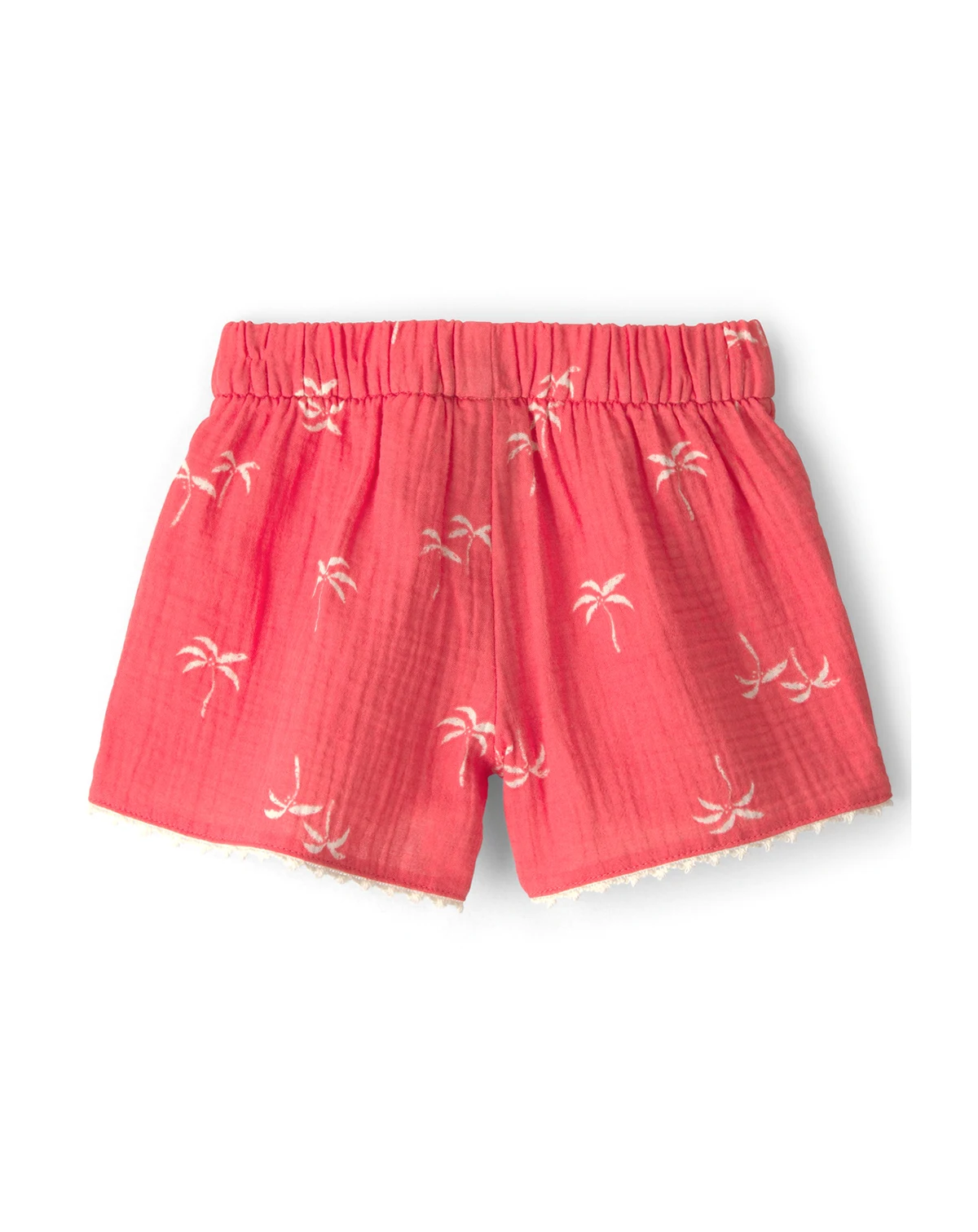 Get ready for sunny adventures with these tropical fashion shorts. Made from lightweight gauze, they offer breathability and comfort for all-day wear. The playful palm tree print adds a splash of fun, while the elastic waistband ensures easy dressing. Perfect for warm weather outings, these shorts keep little ones stylish and ready to explore. An essential addition to any toddler's wardrobe, blending fashion and function effortlessly.
