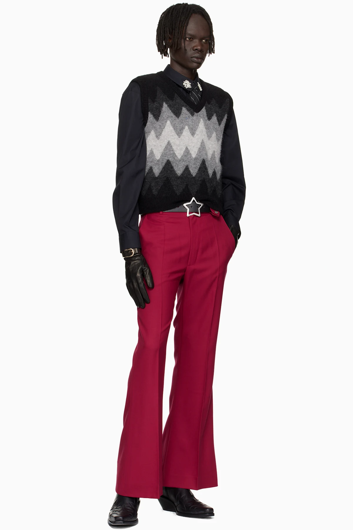 Black Buckle Appliqué Leather Gloves