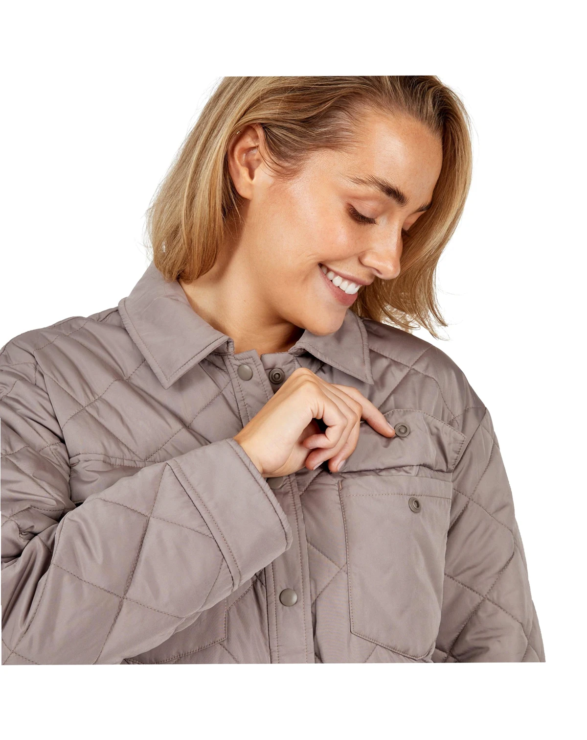 From misty mountains to breezy beaches, this shirt-jacket hybrid is the perfect blend of fashion and function. A drop shoulder design gives you a roomy fit that allows you to move effortlessly. A snap closure front with a storm placket, plus wind- and water-resistance, protect you from the elements.