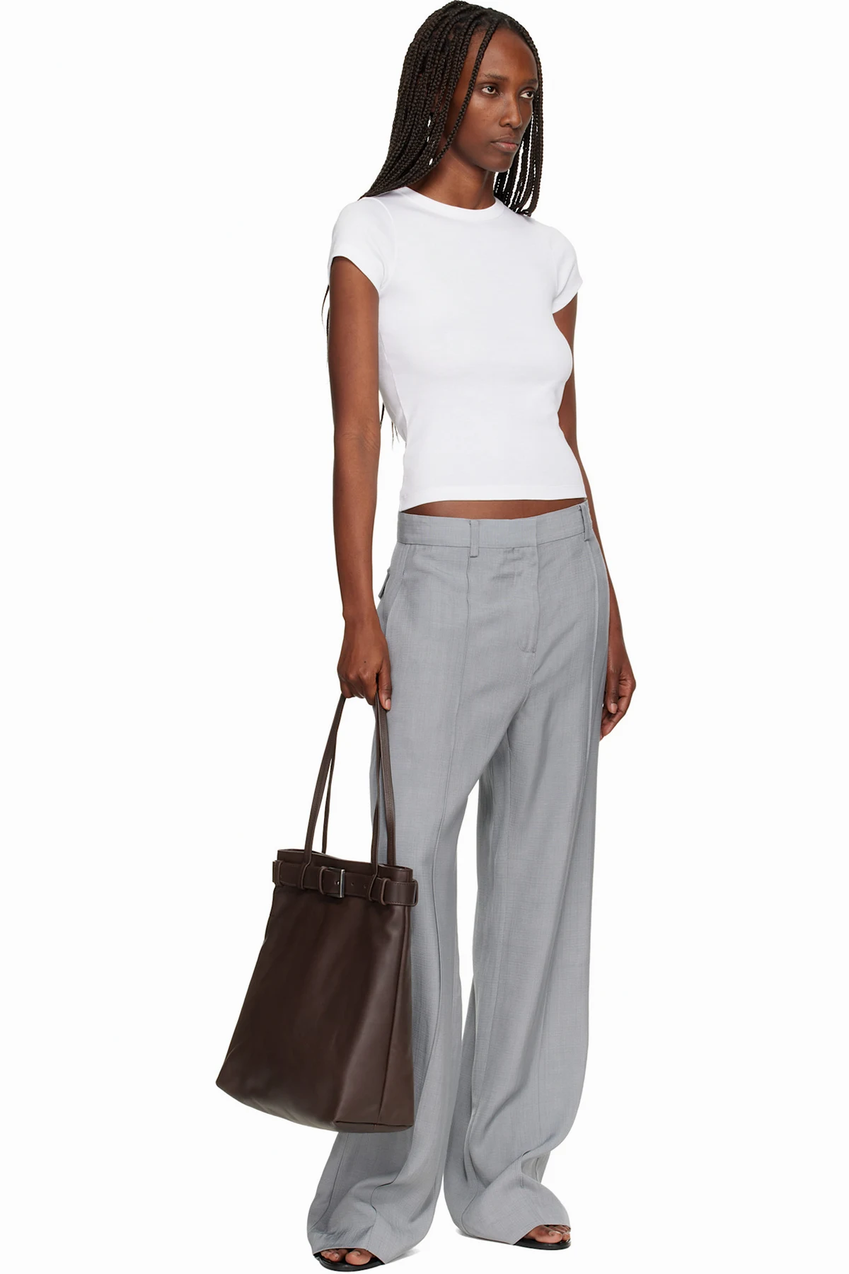 Grained leather tote.