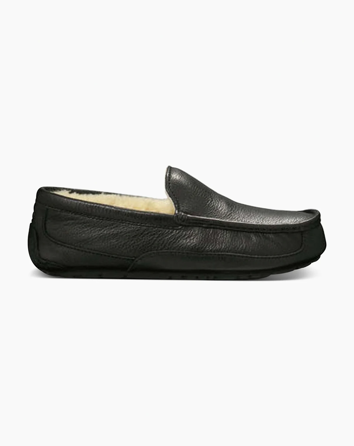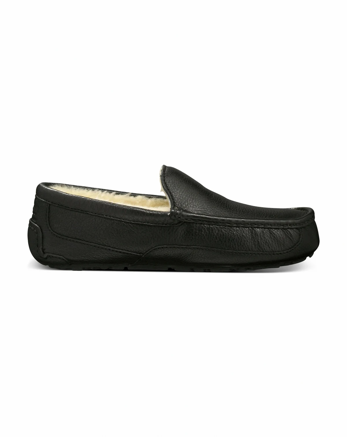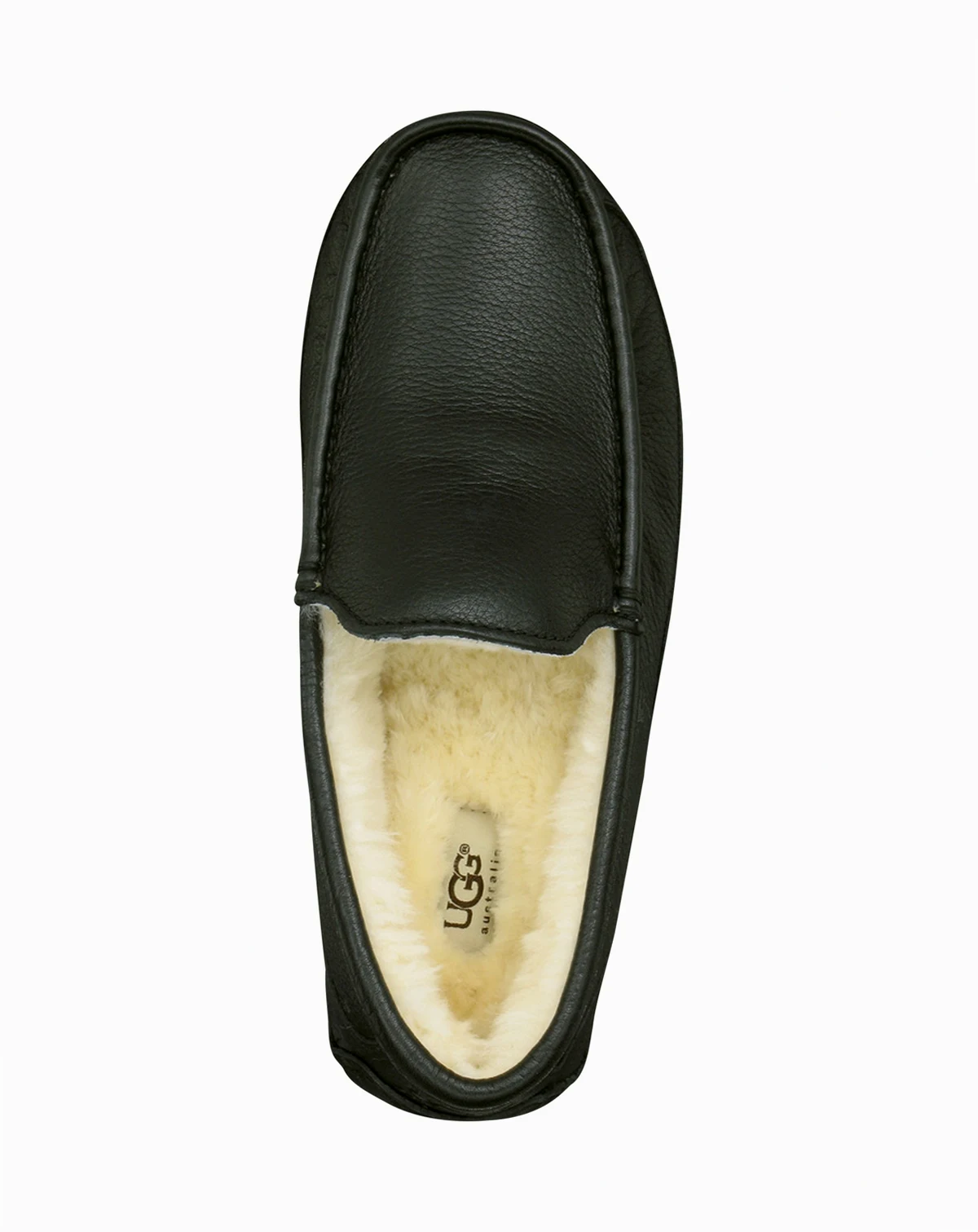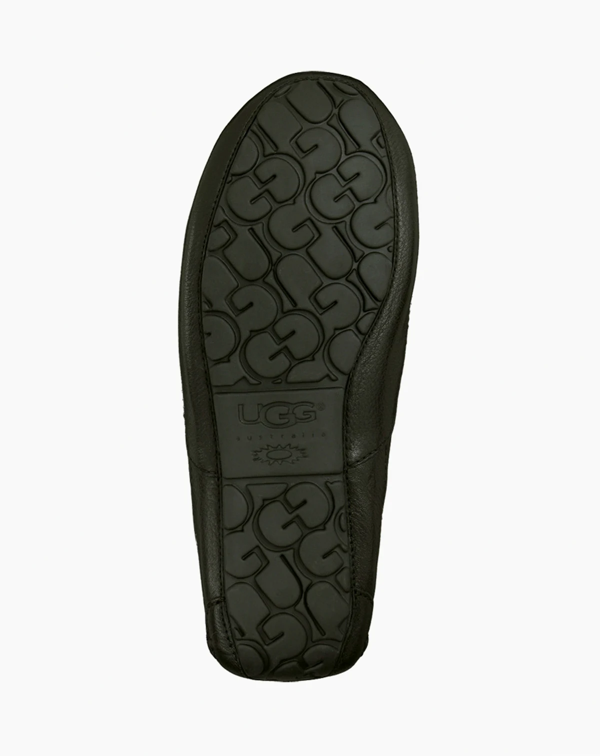UGG® uses a full-grain and water-resistant leather upper with moc-toe styling and a soft wool lining to craft these classic Ascot slippers.