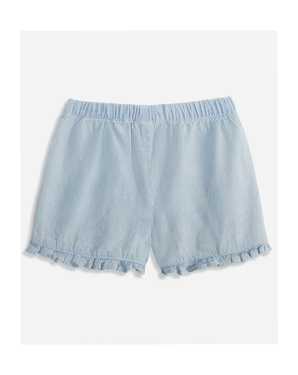 A fresh spin on a casual essential, these First Impressions chambray shorts polish her everyday look with a cute ruffled hem.