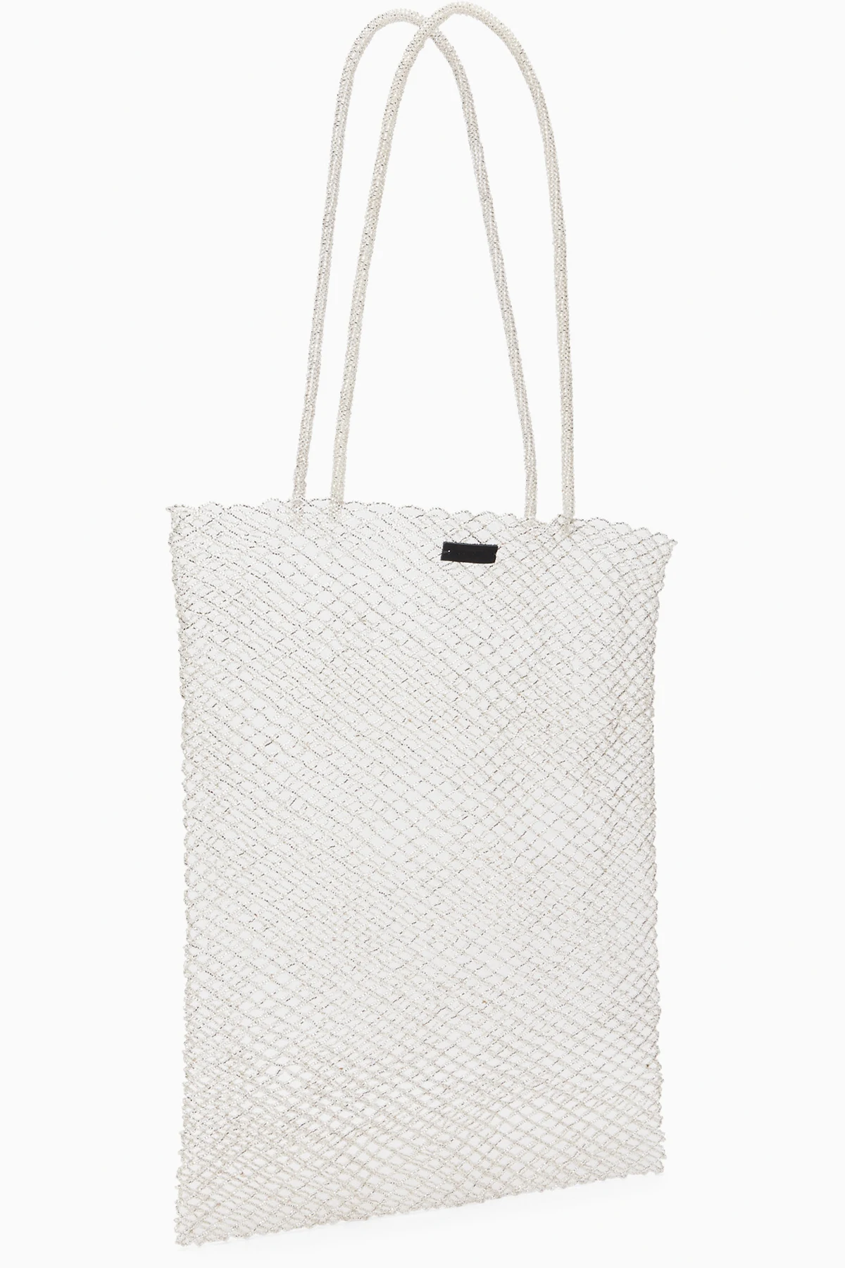 Handcrafted beaded mesh tote.