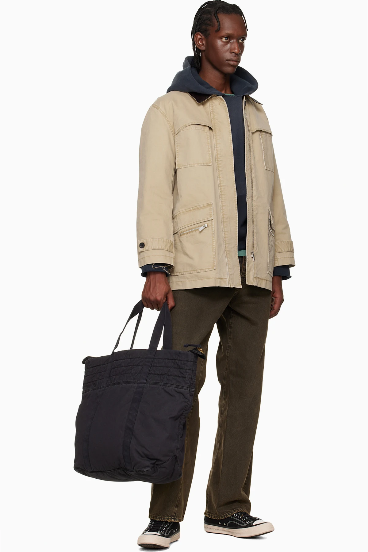 Quilted cotton- and linen-blend canvas tote.