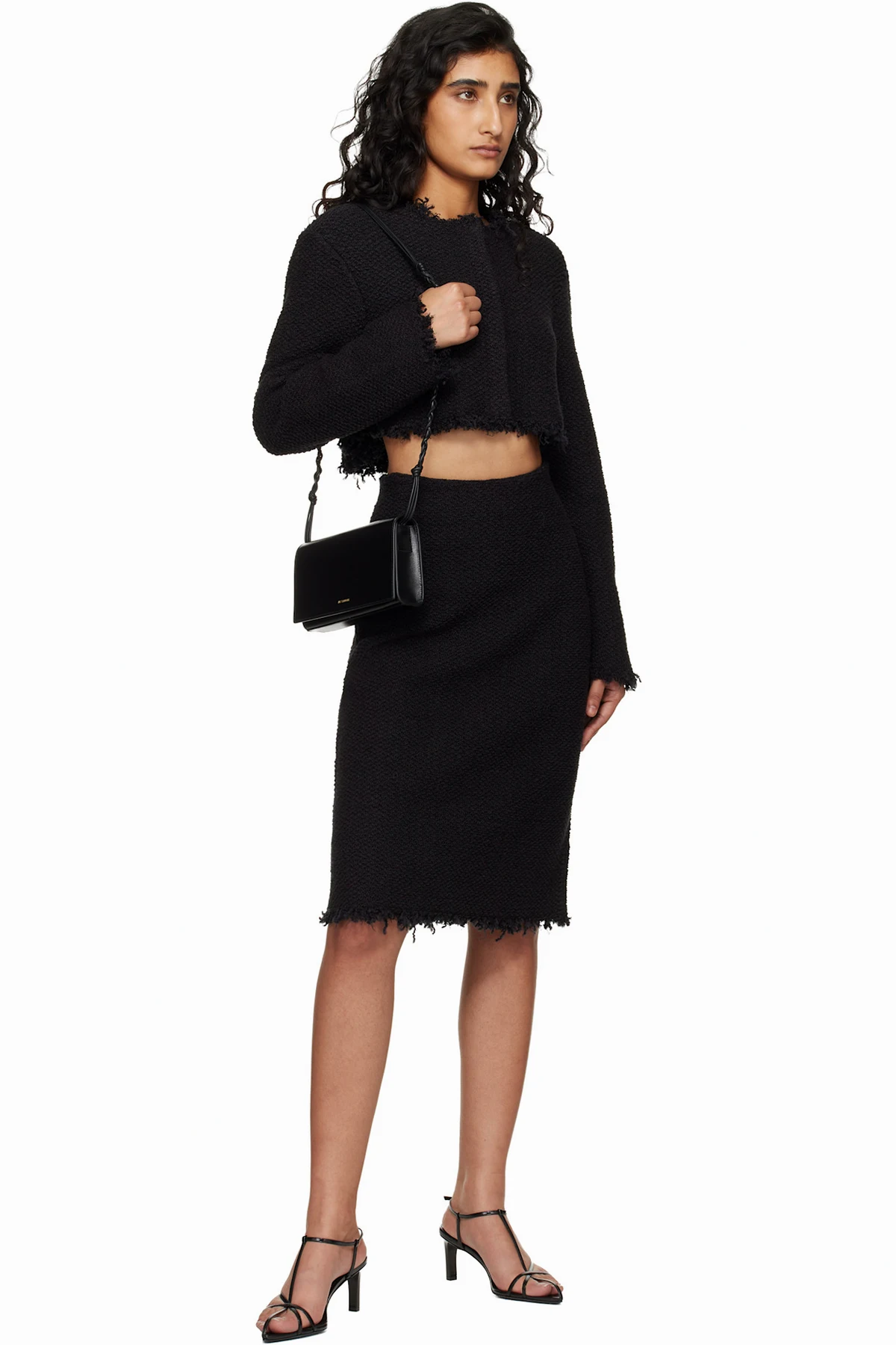 · Knotted detailing at fixed crossbody strap