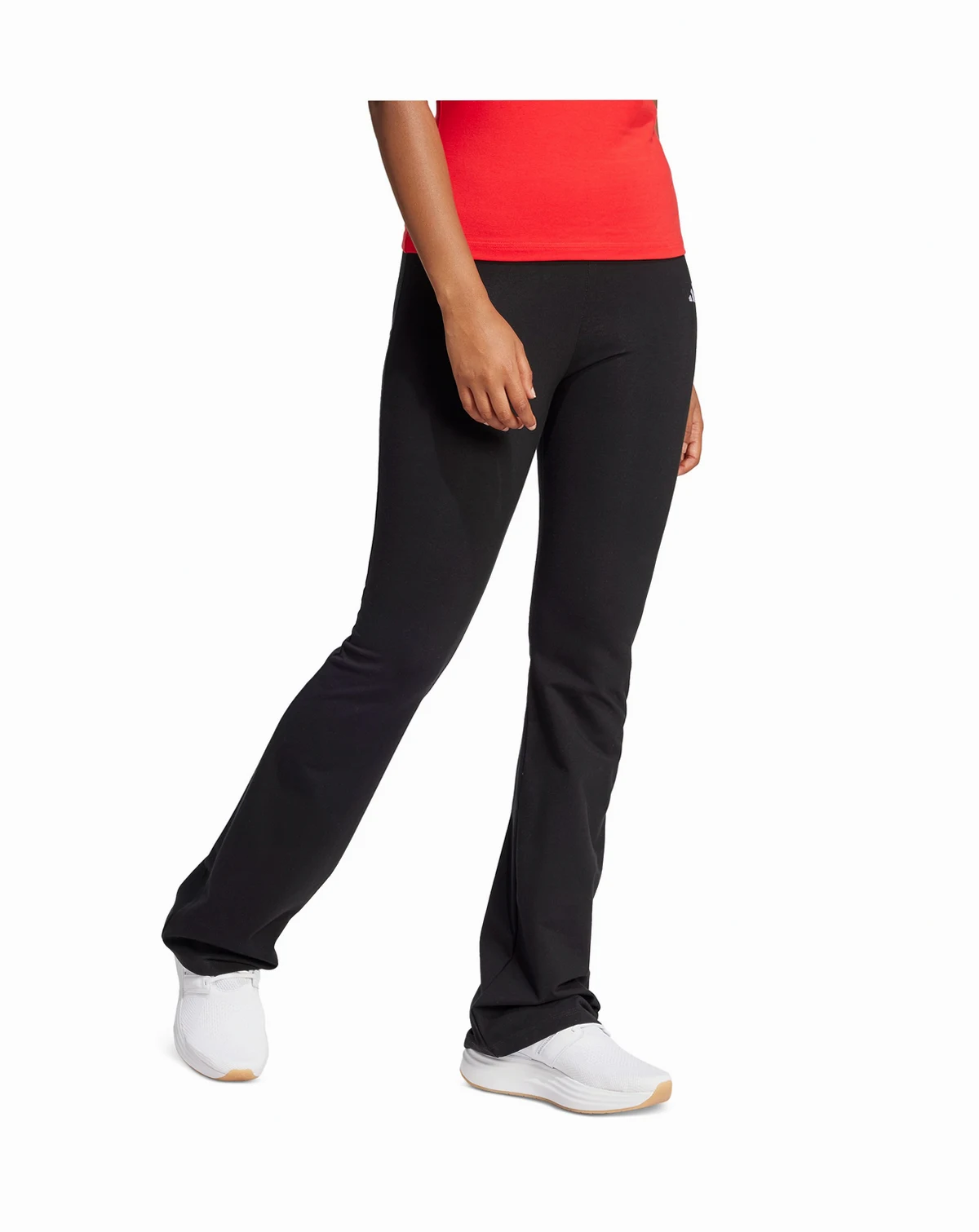 Meet the Essentials Small Logo Flared Leggings from adidas. These tight-fitting leggings offer both comfort and a high-rise fit.