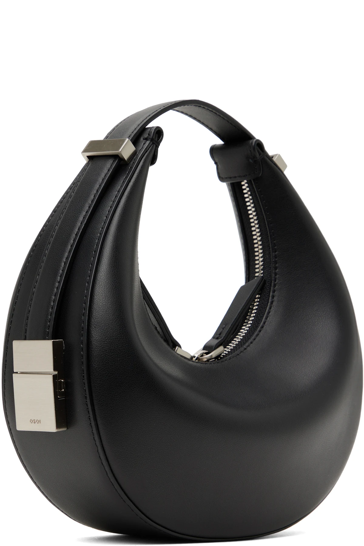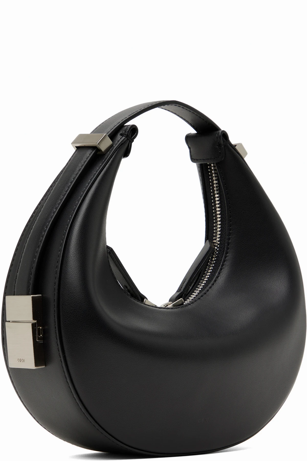 Buffed leather top handle bag in black.