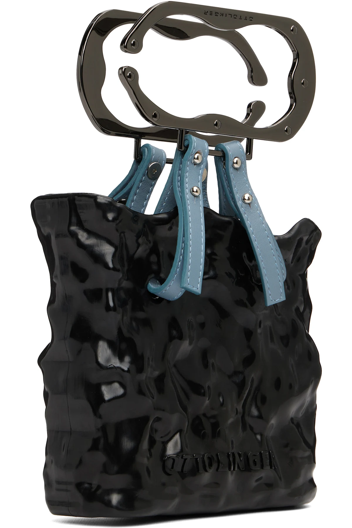 · Logo-engraved gunmetal-tone hardware