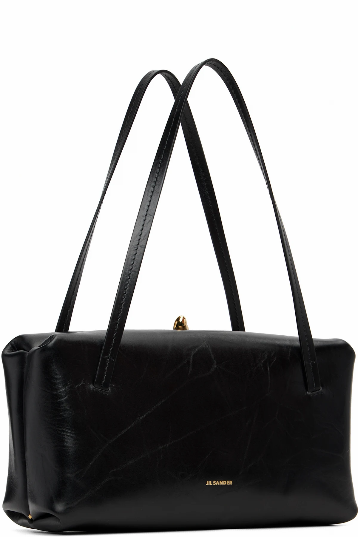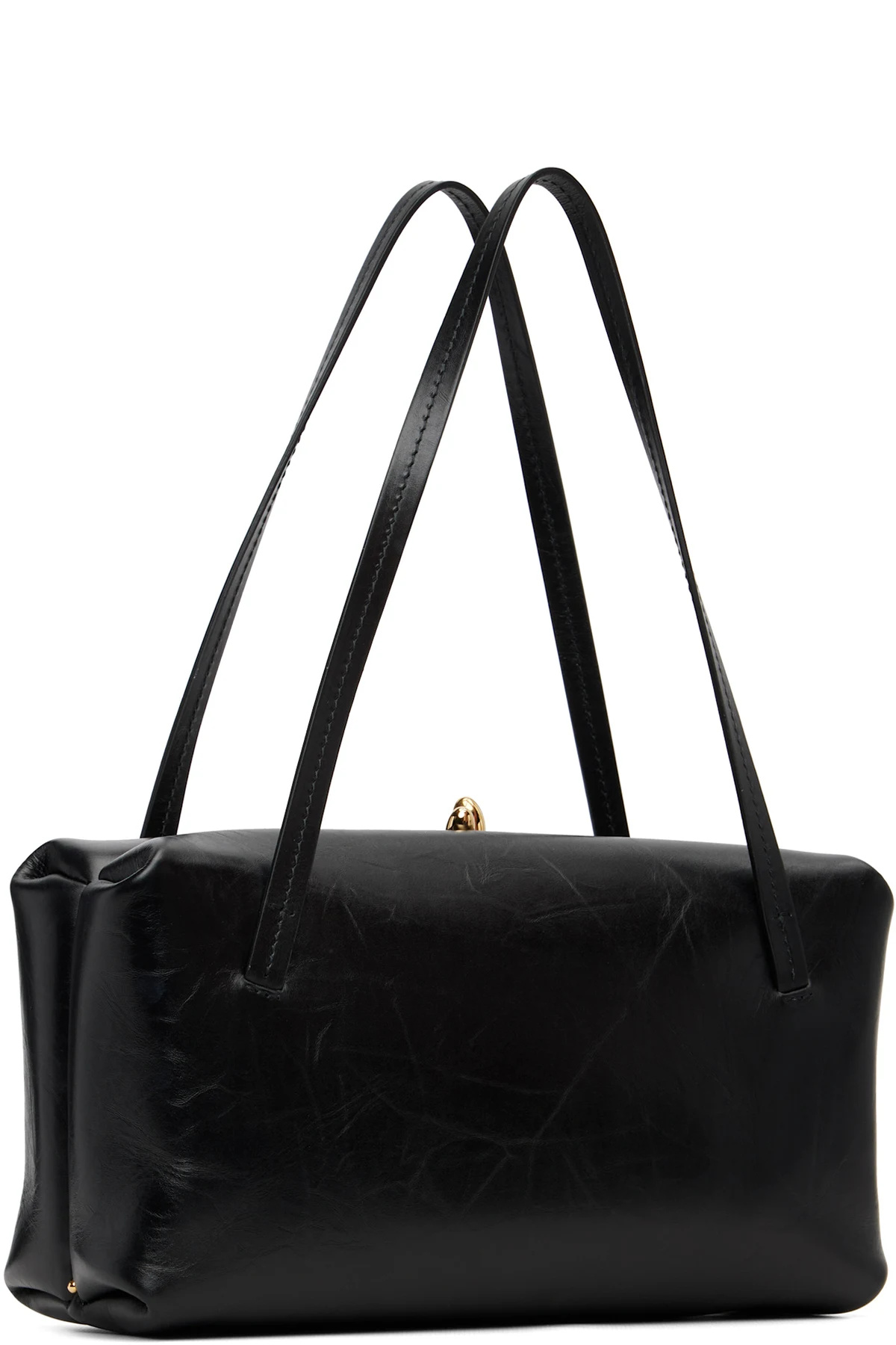 Creased calfskin top handle bag.