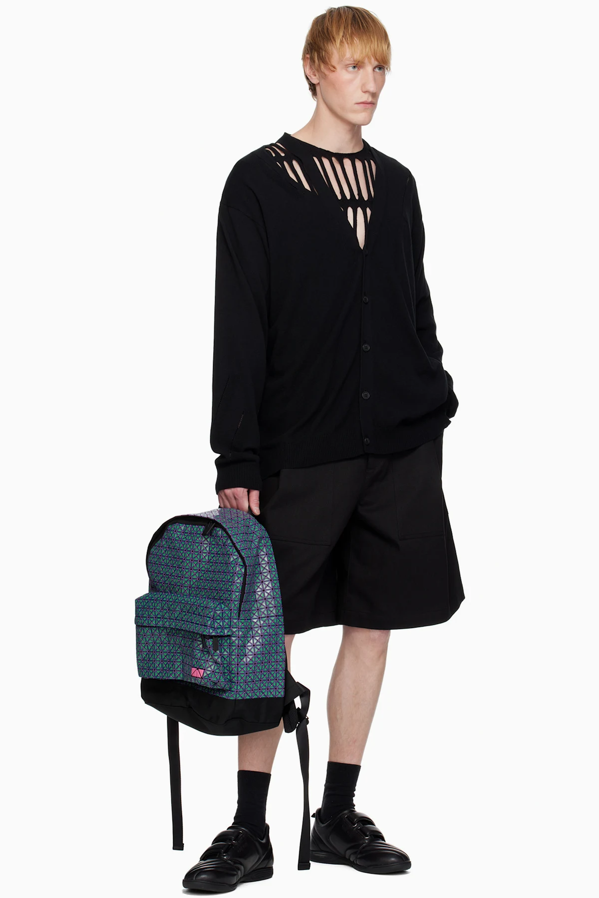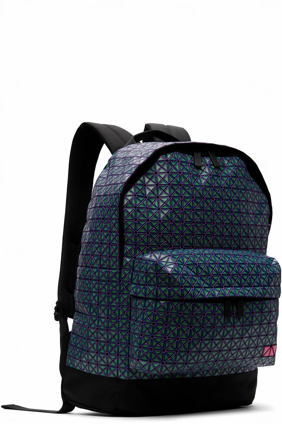 Cotton canvas backpack in black. Signature triangular vinyl appliqués in green and purple throughout.