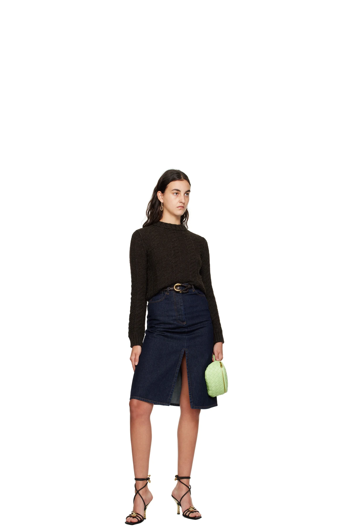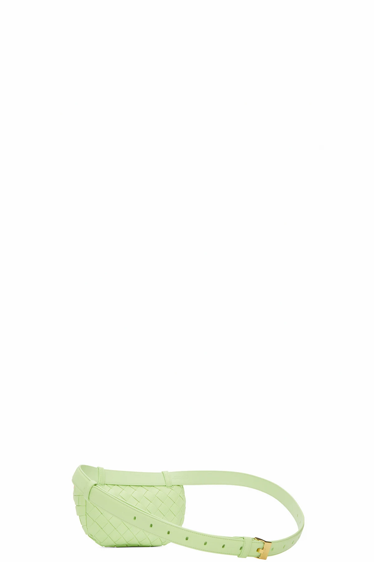 Padded intrecciato-woven buffed lambskin pouch in green.