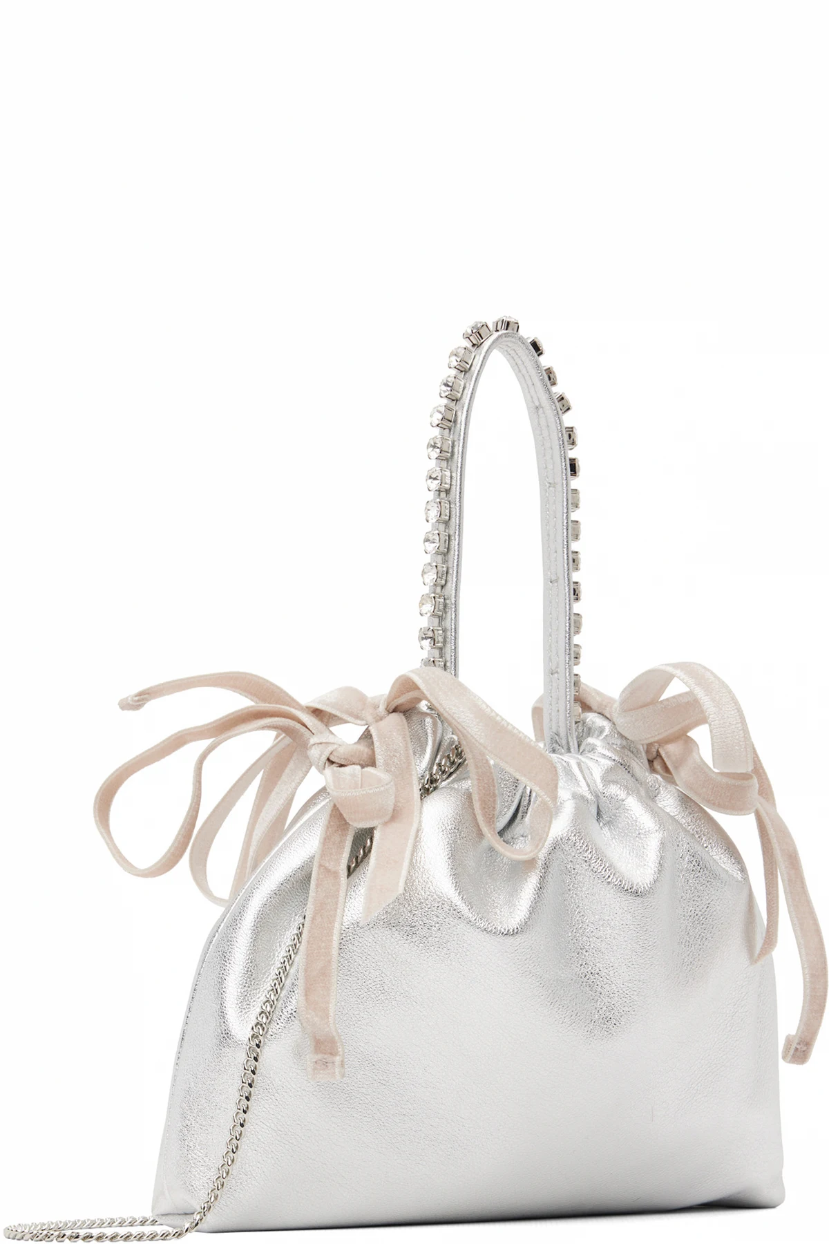 Silver Drawstring Mini Top Handle Bag