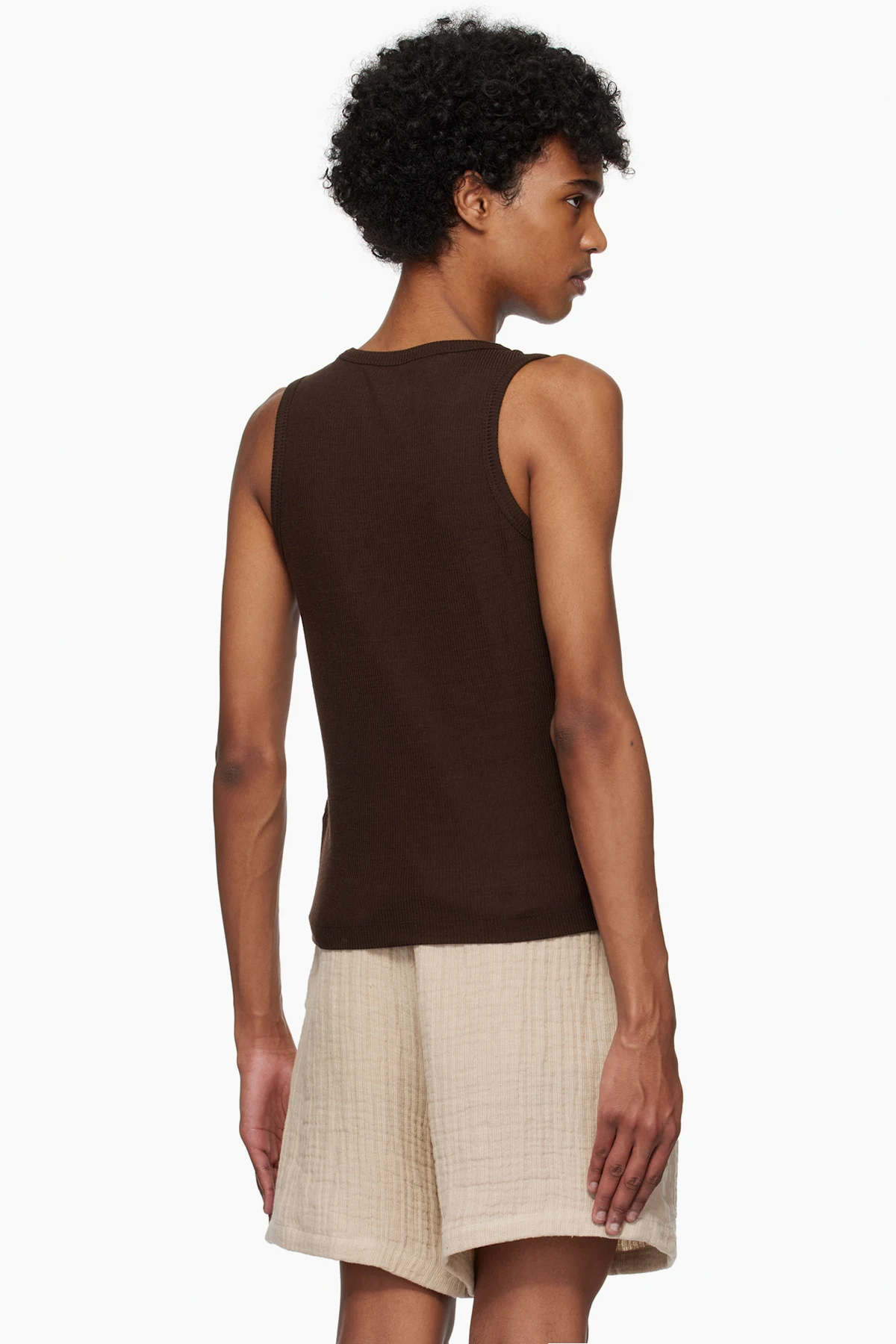 Brown Super Fine Wool Ribbed Tank Top
