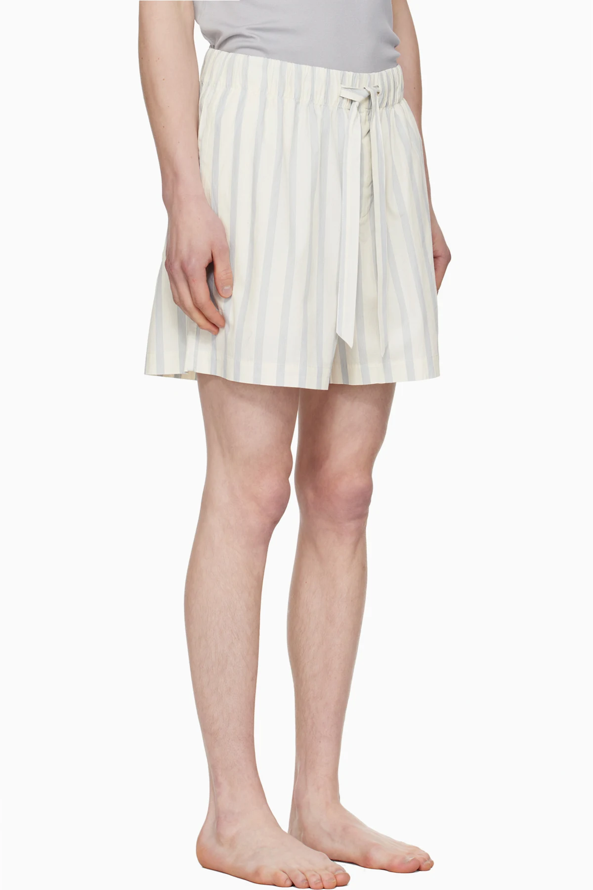Lightweight organic cotton poplin pyjama shorts. Stripes throughout.