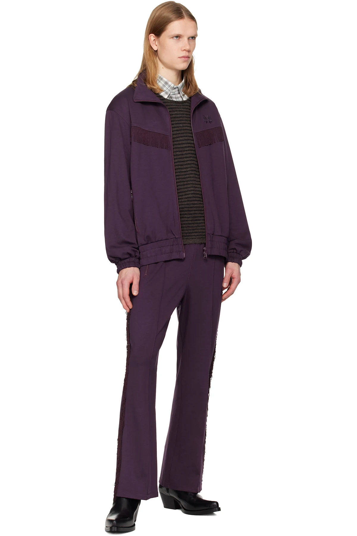 Purple Fringe Boot-Cut Track Pants