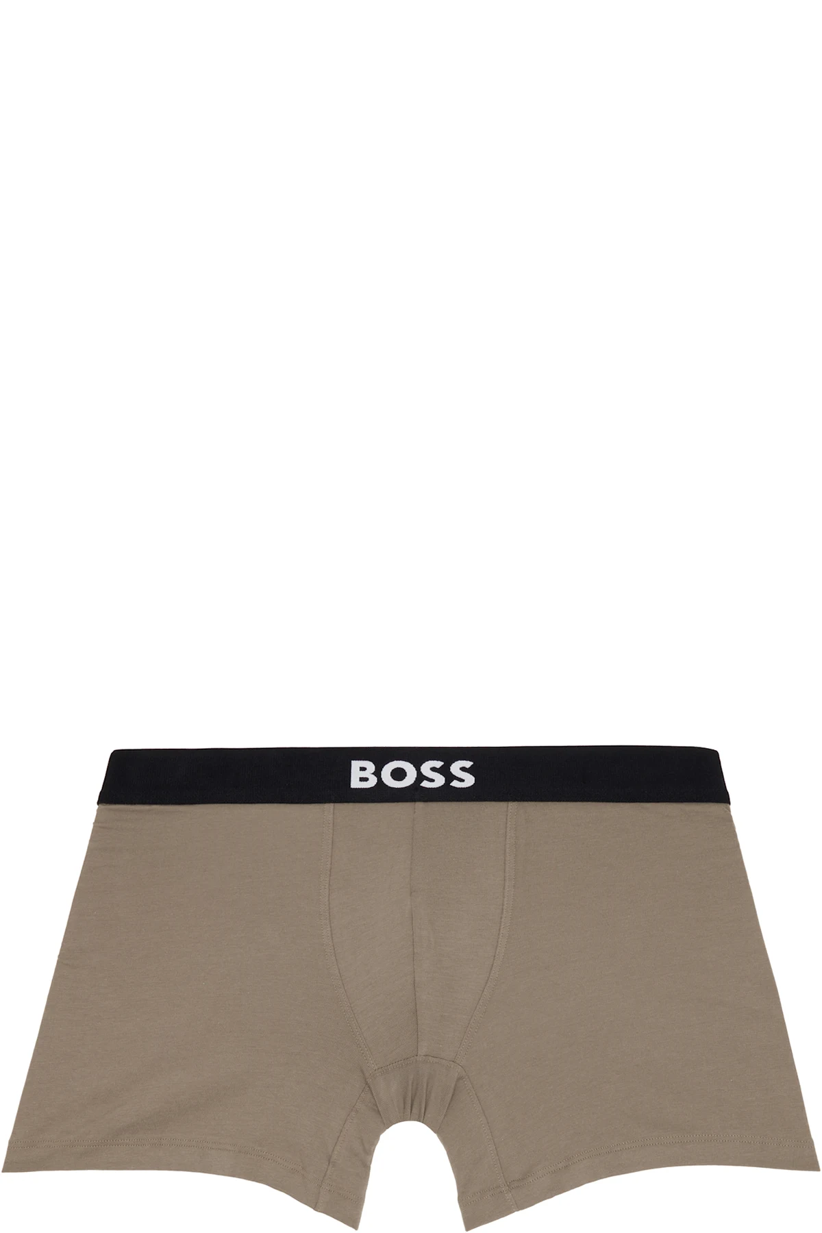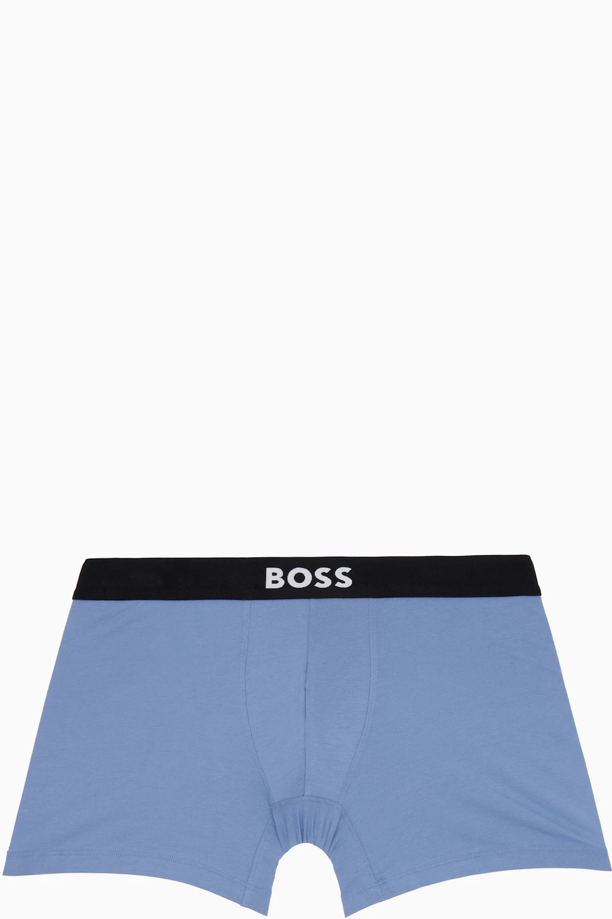 Assorted pack of three stretch cotton jersey boxer briefs in black, gray, and blue. Logo-woven elasticized waistband.
