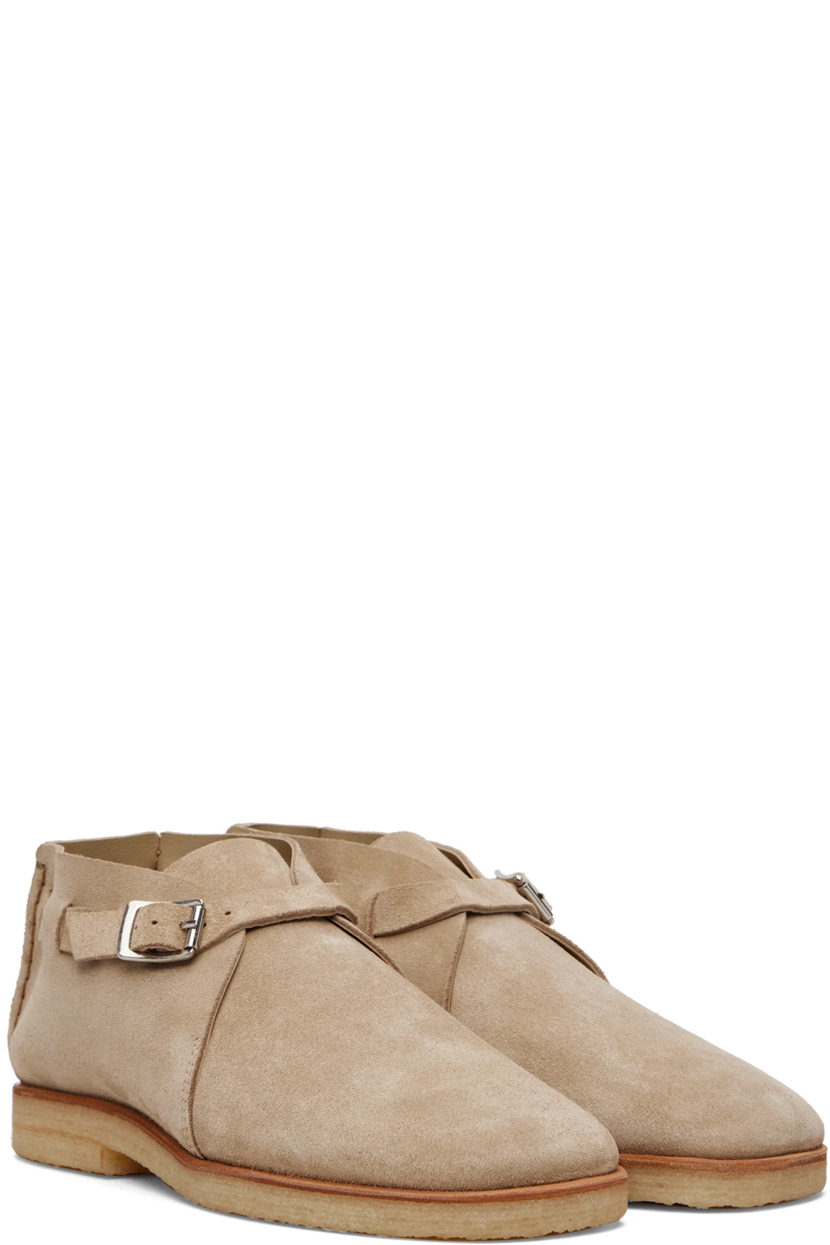 Beige Buckle Slip On Desert Boots