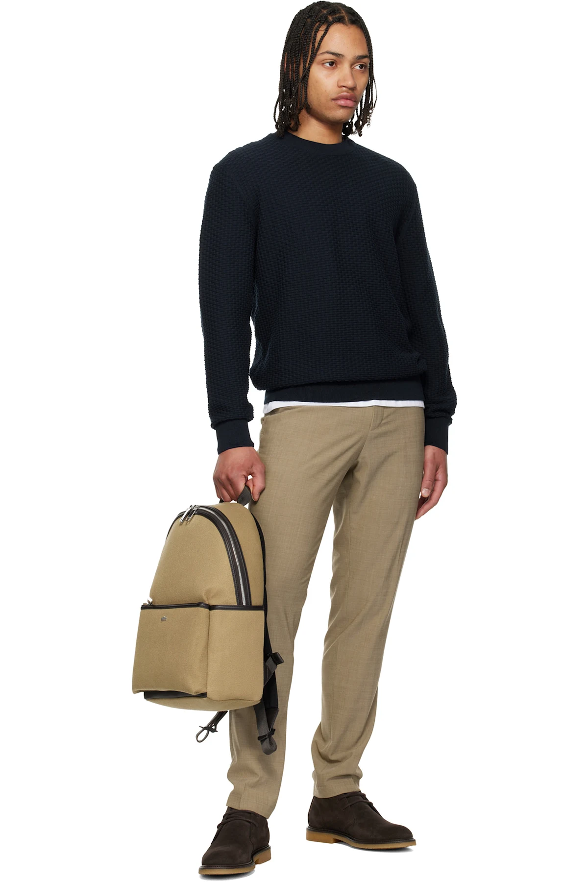 Ankle-high suede desert boots.