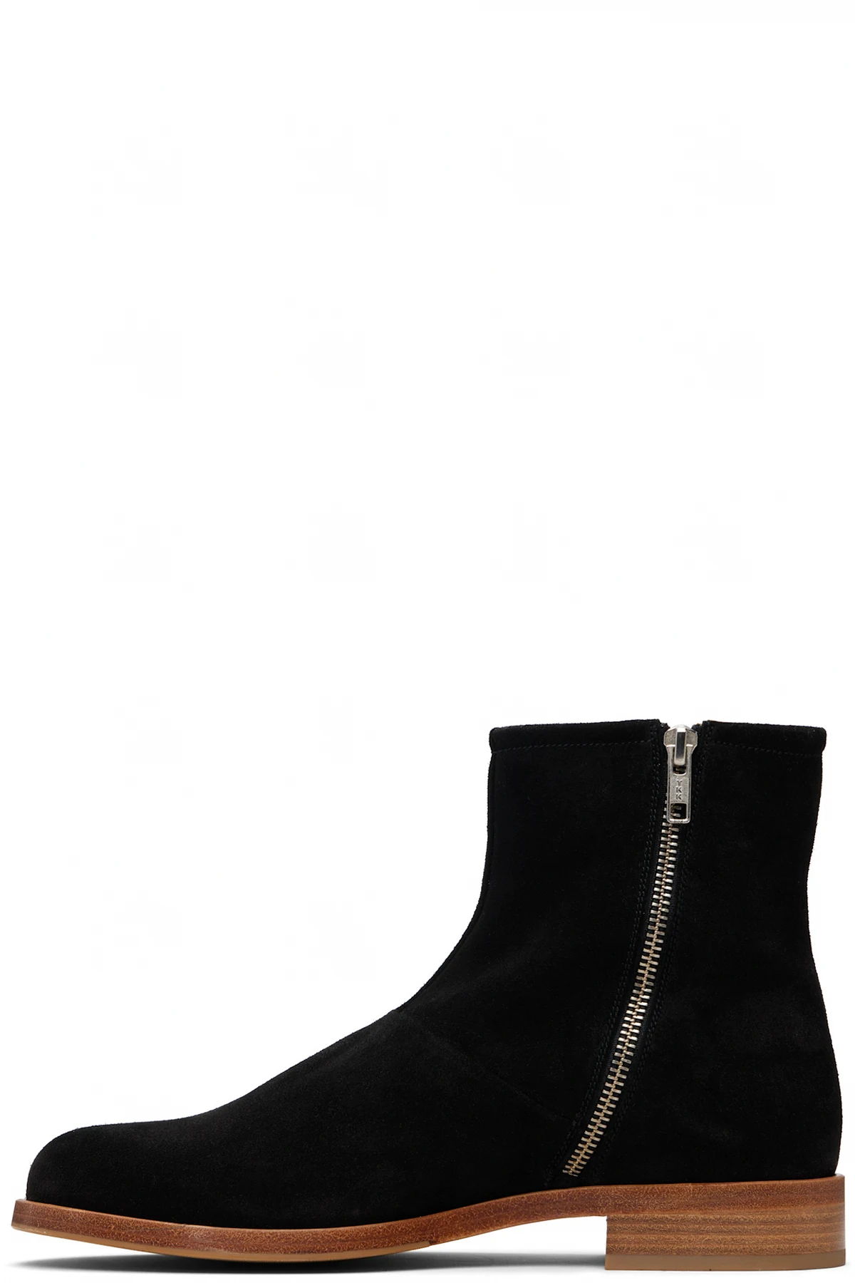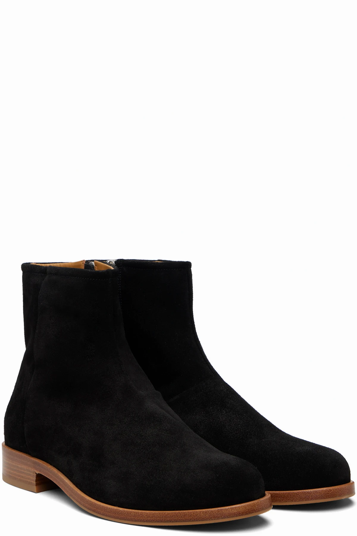 Black Waxed Suede Zipper Boots