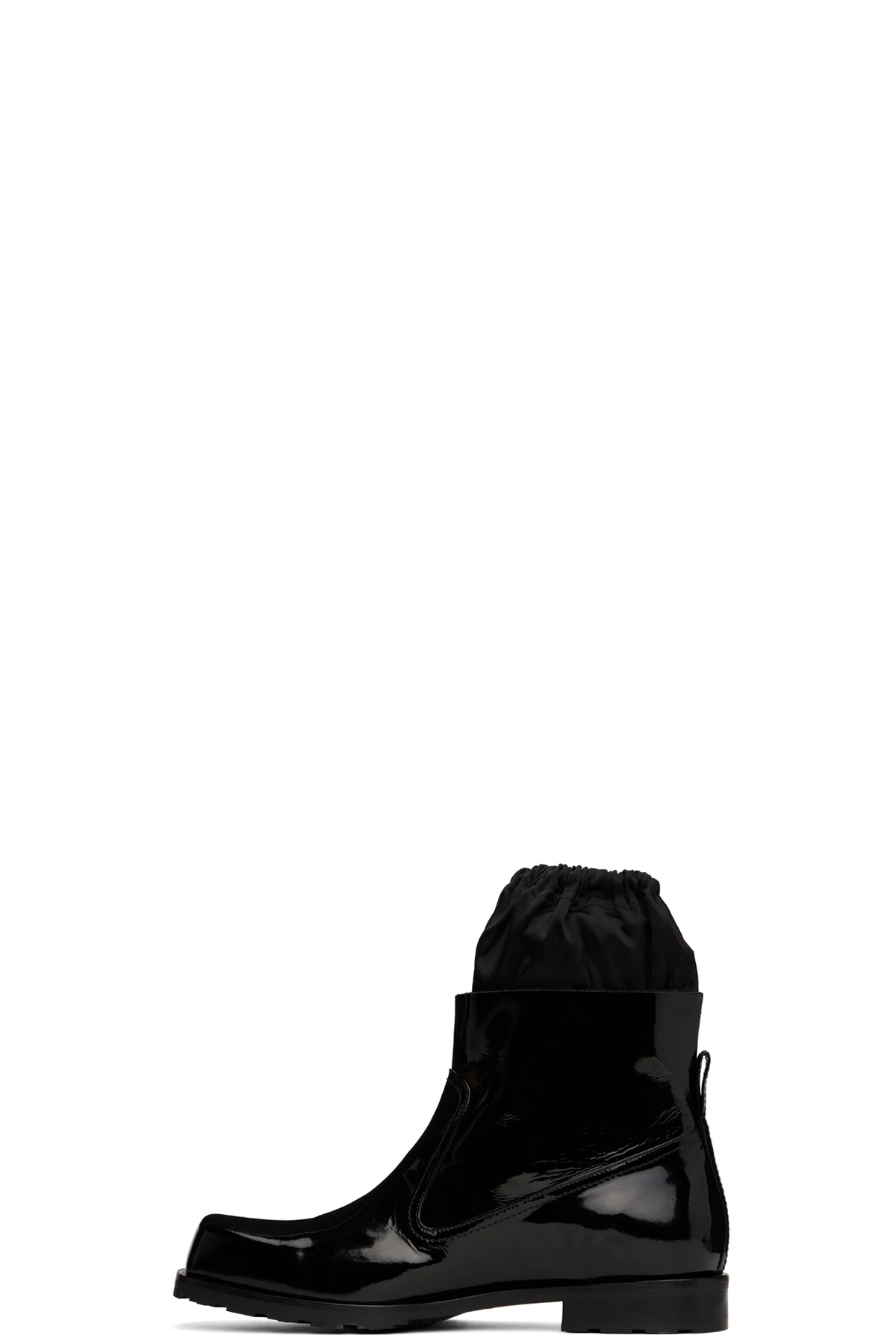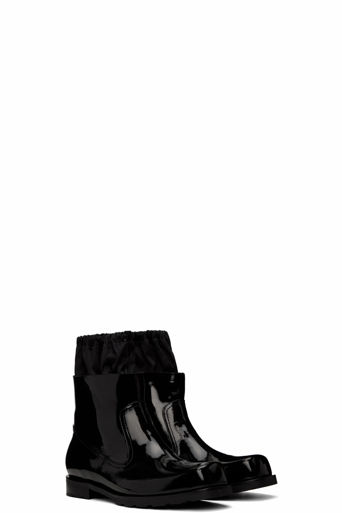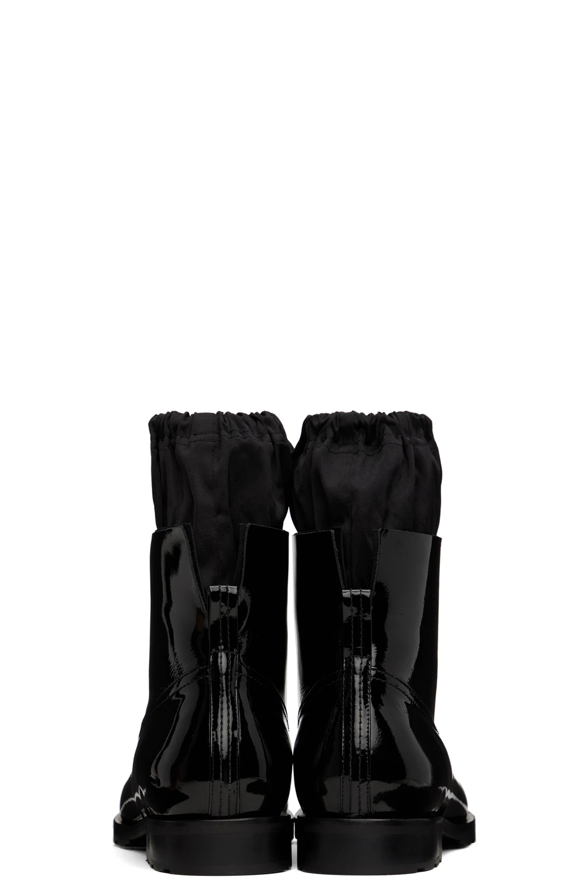 Ankle-high patent leather boots in black.