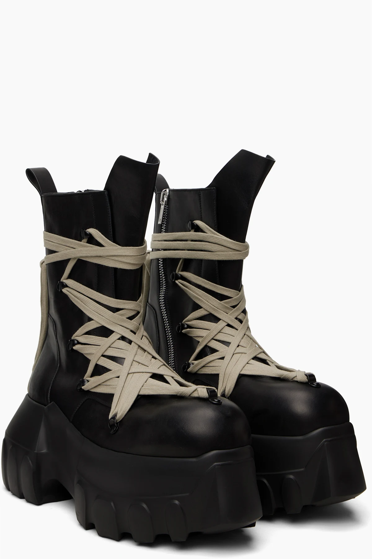 Mid-calf vegetable-tanned buffed calfskin boots.