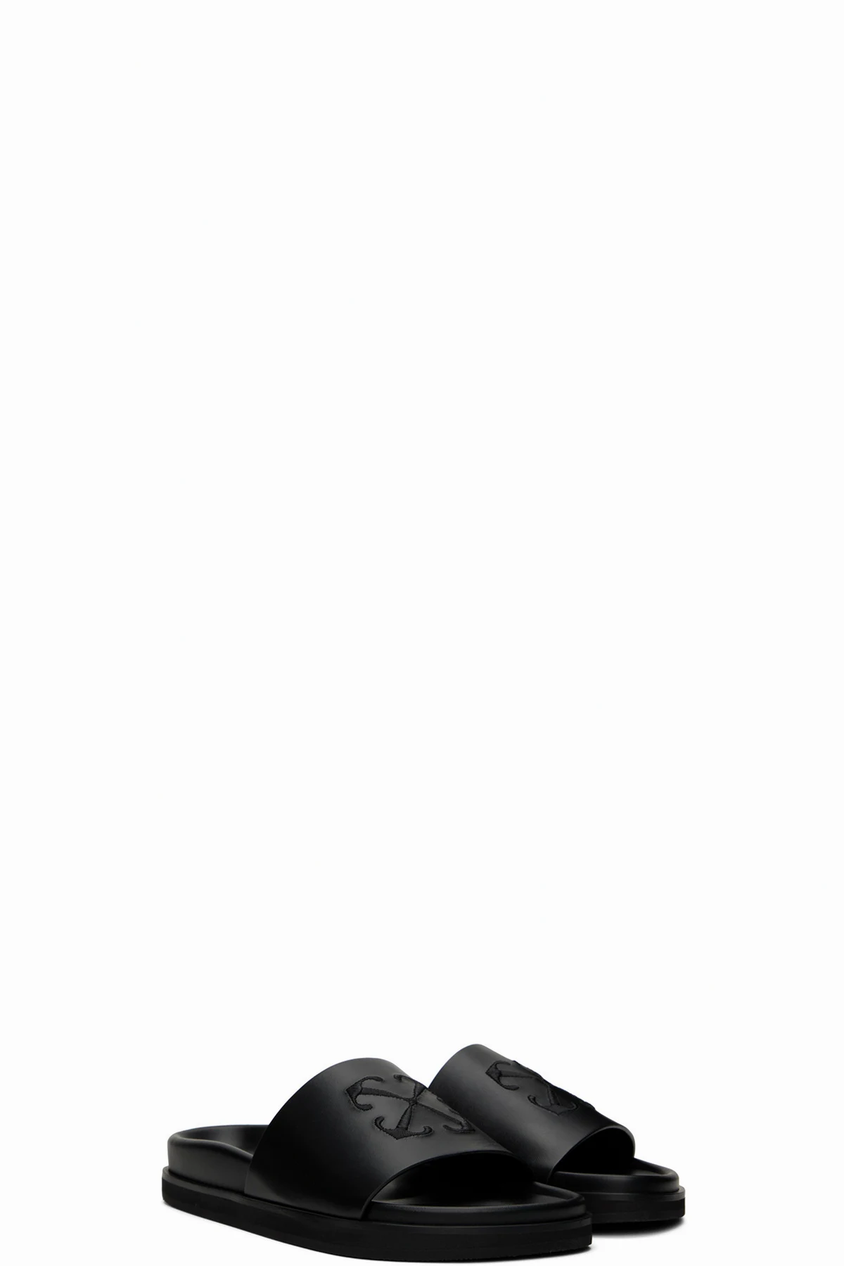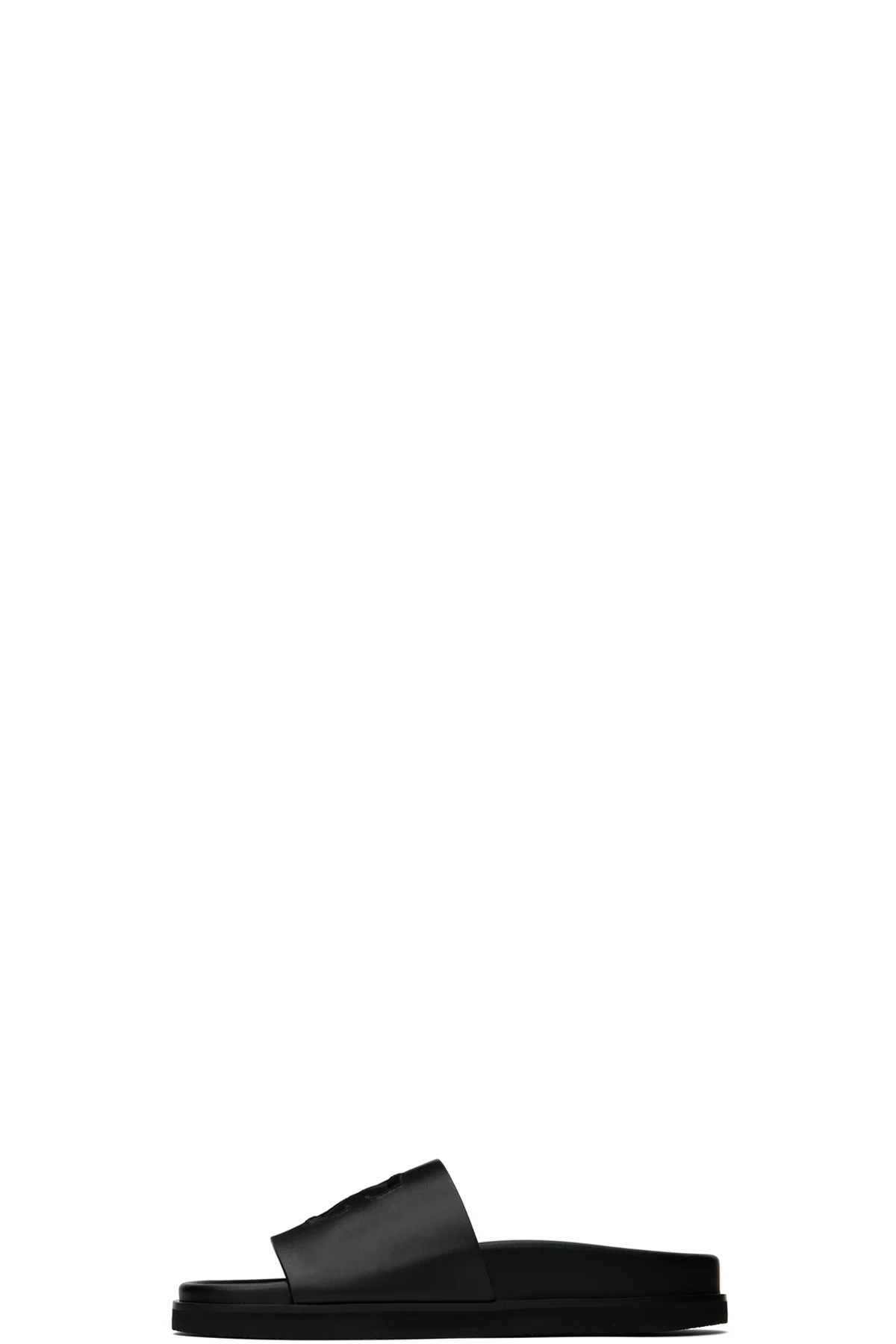 Buffed leather slip-on sandals in black.