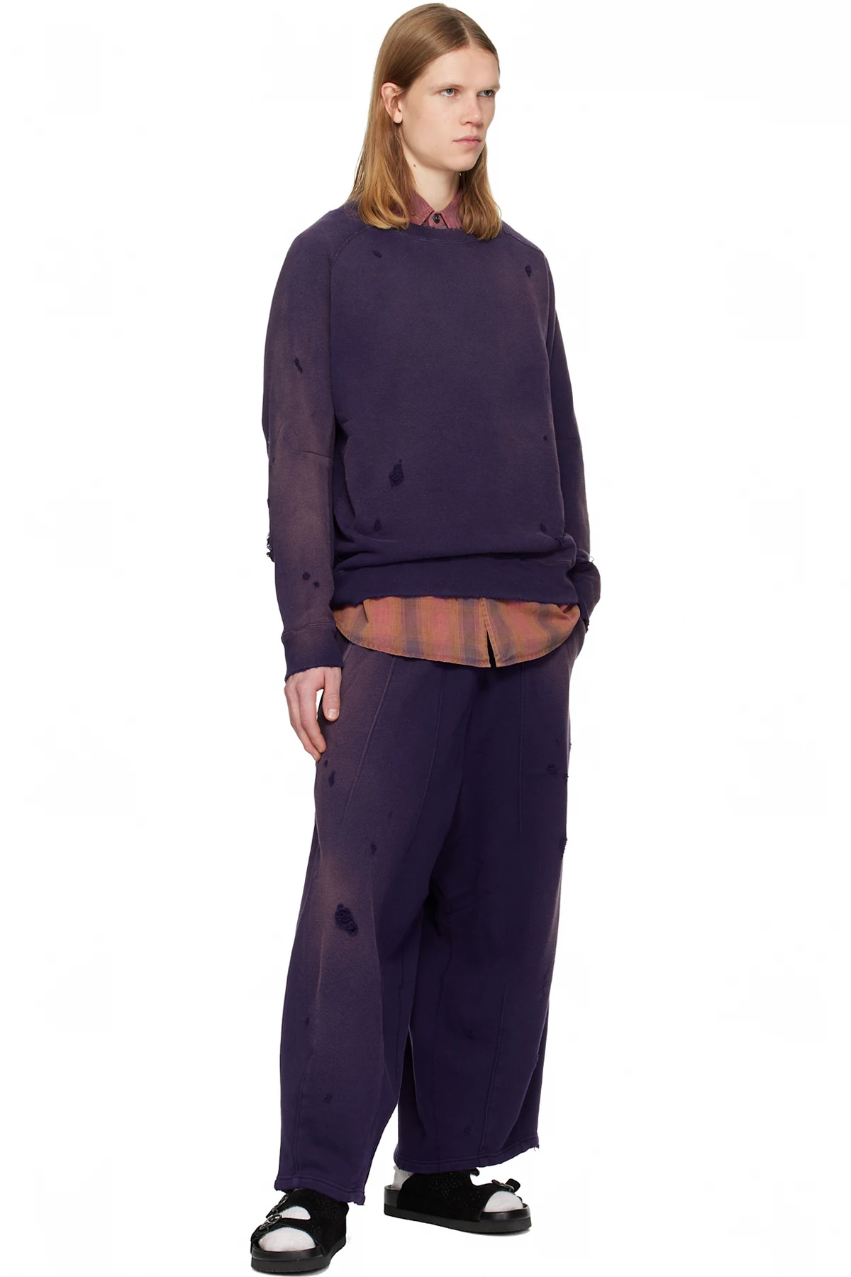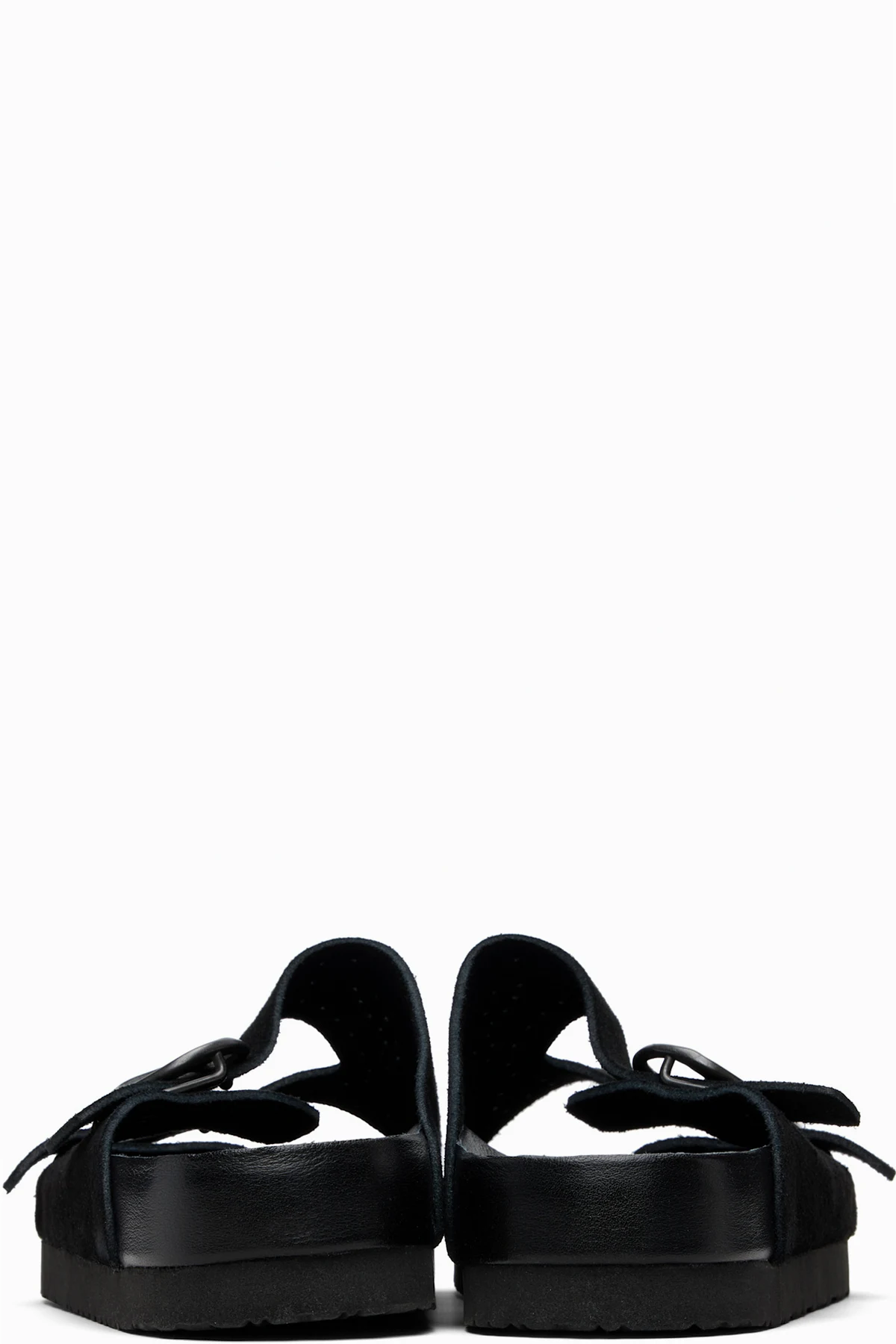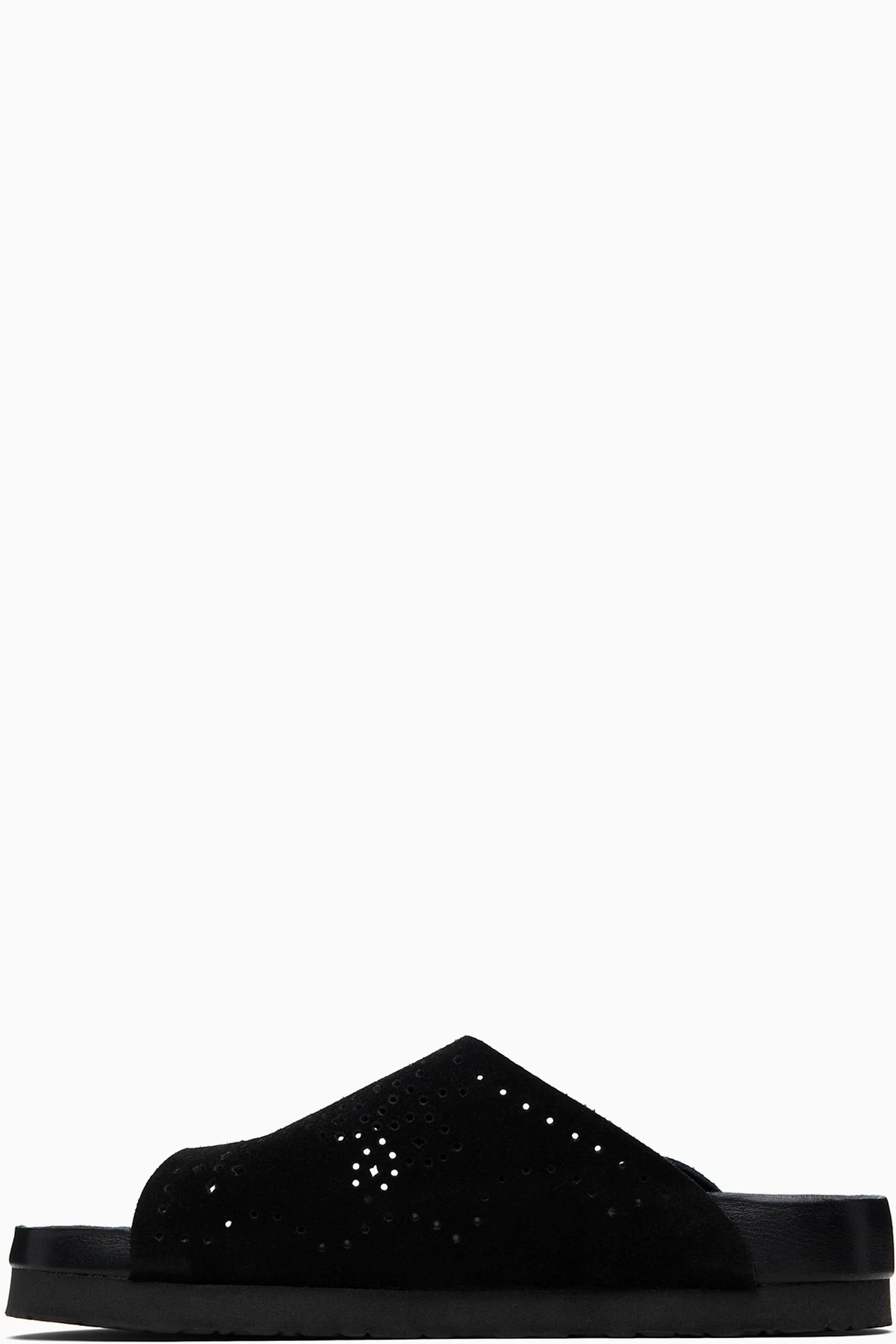 Suede slip-on sandals.