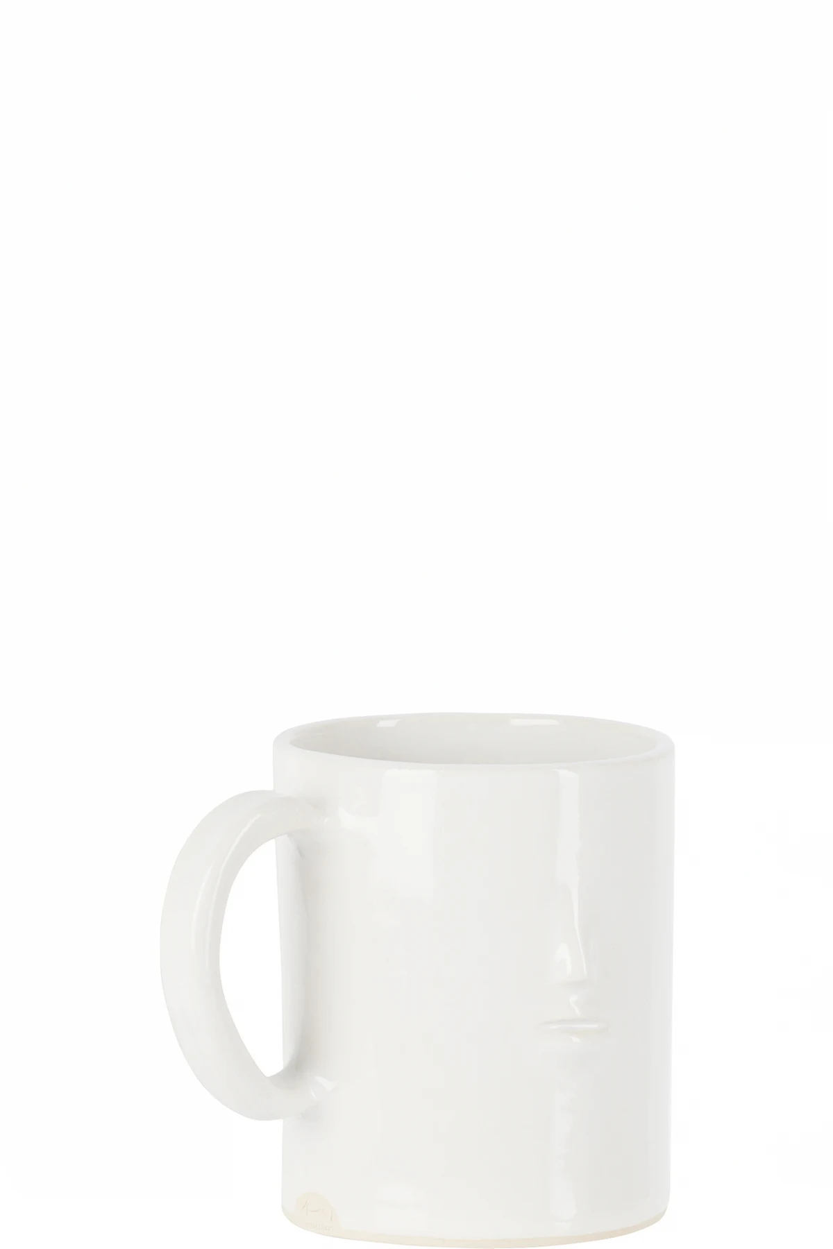 Handcrafted glossy-glazed ceramic mug in white.