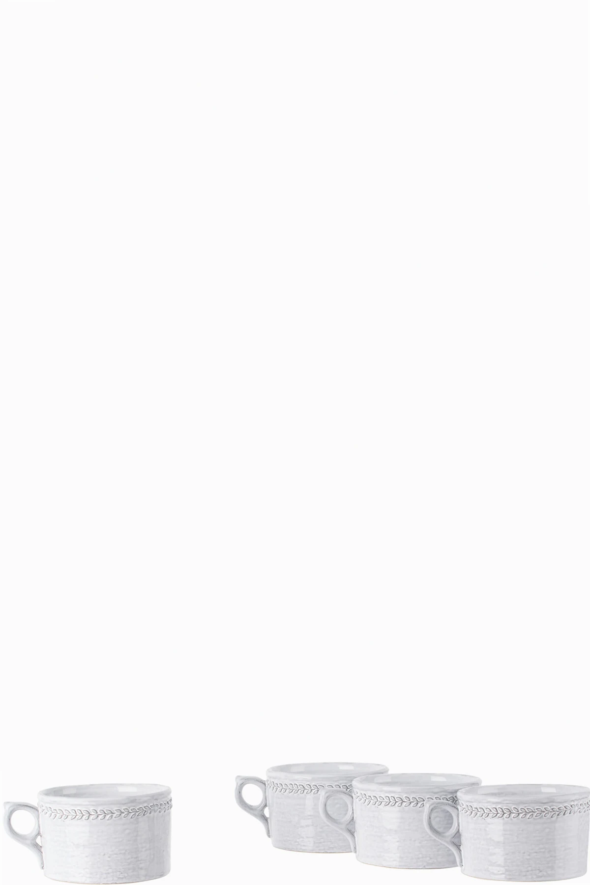 Set of four handcrafted glazed stoneware mugs in white.