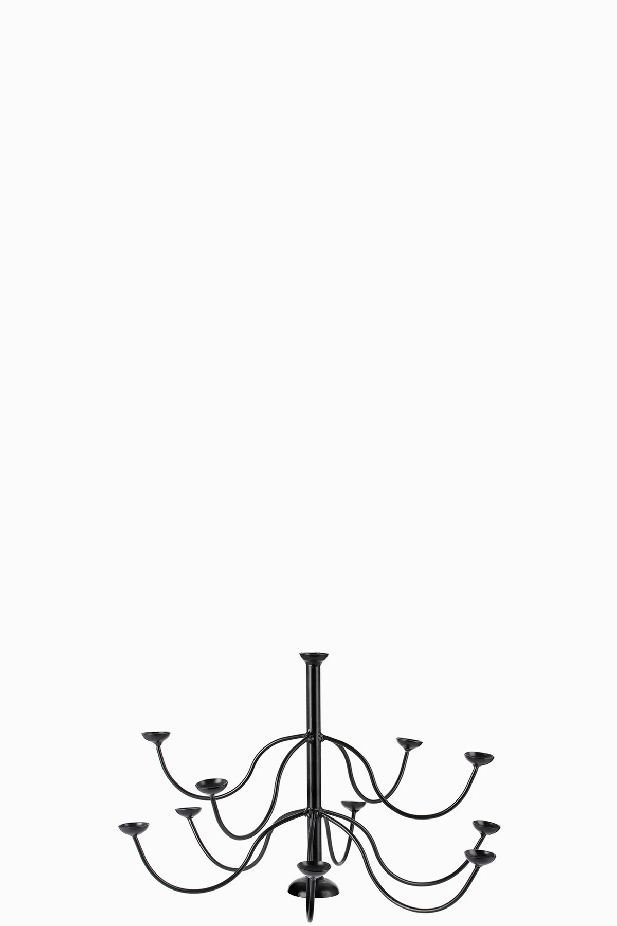 Handcrafted sculptural powder-coated wrought iron centerpiece in black.