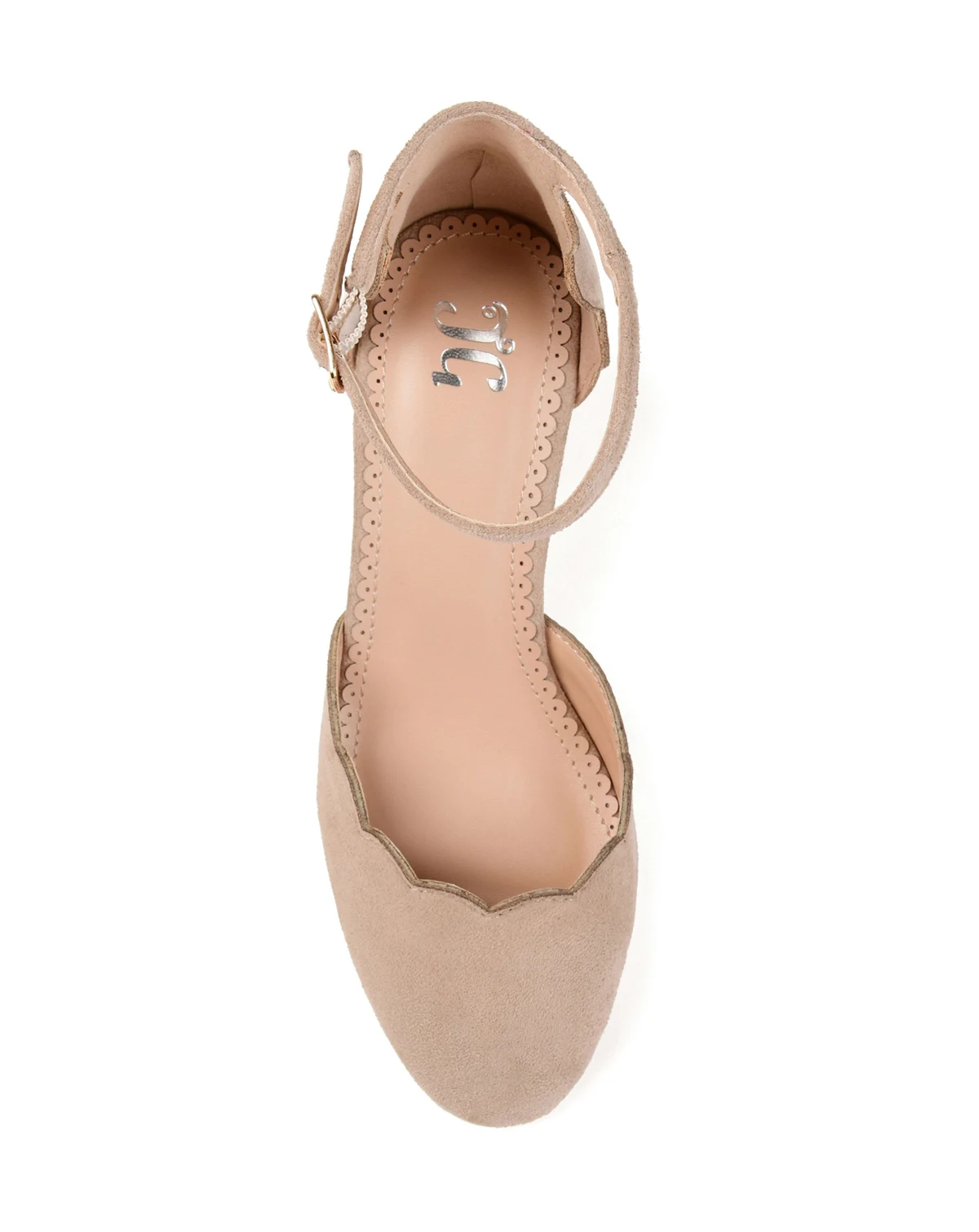 Add some vintage flair to your wardrobe with the Edna by Journee Collection. This darling d'Orsay pump is detailed with faux leather and a padded insole for a comfortable lift. Exquisite details like a slim ankle strap and 1920s-inspired scalloped trim perfect the design.